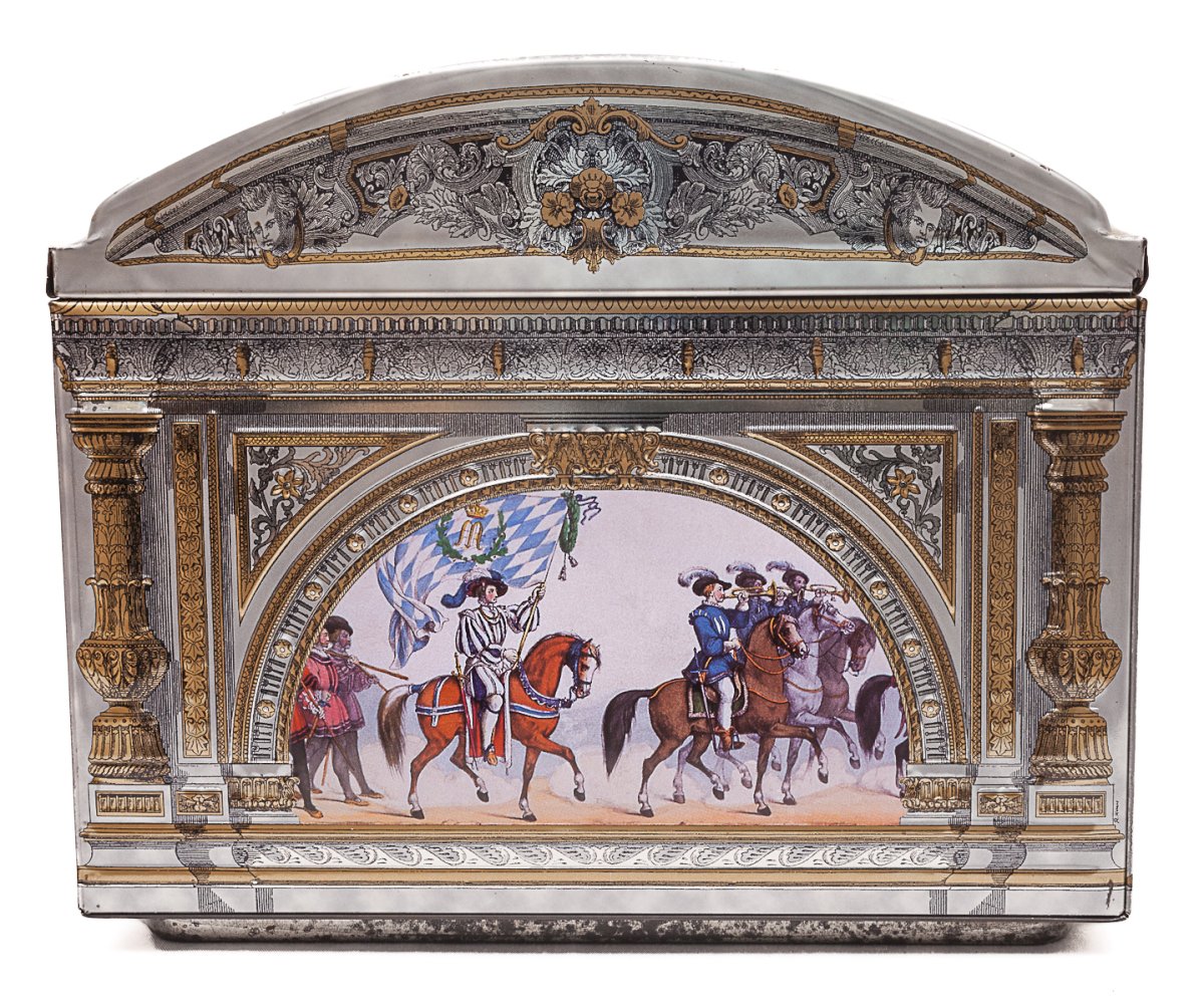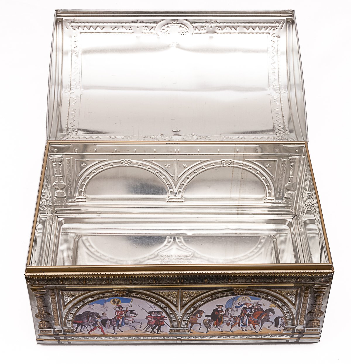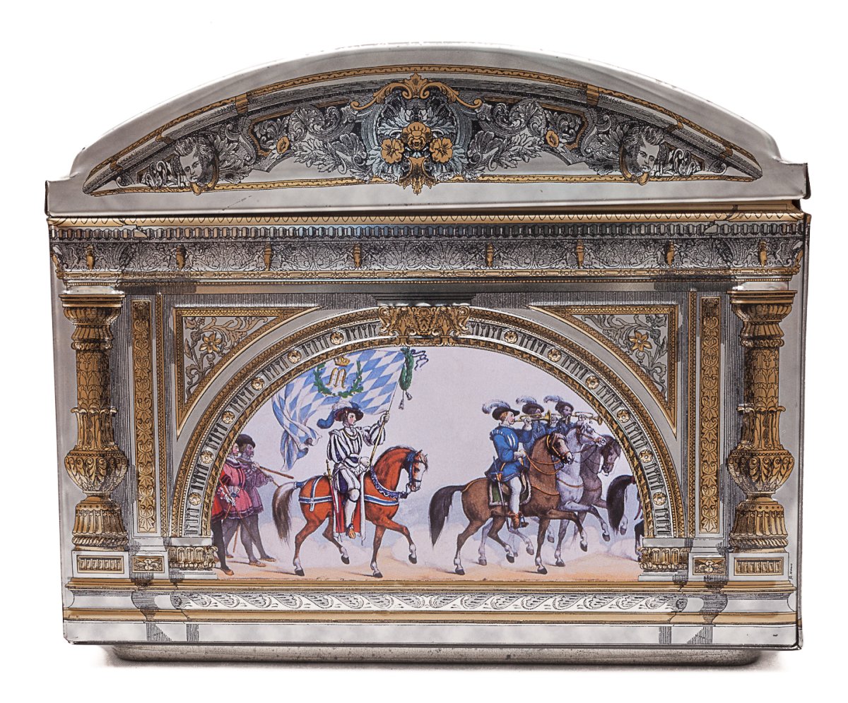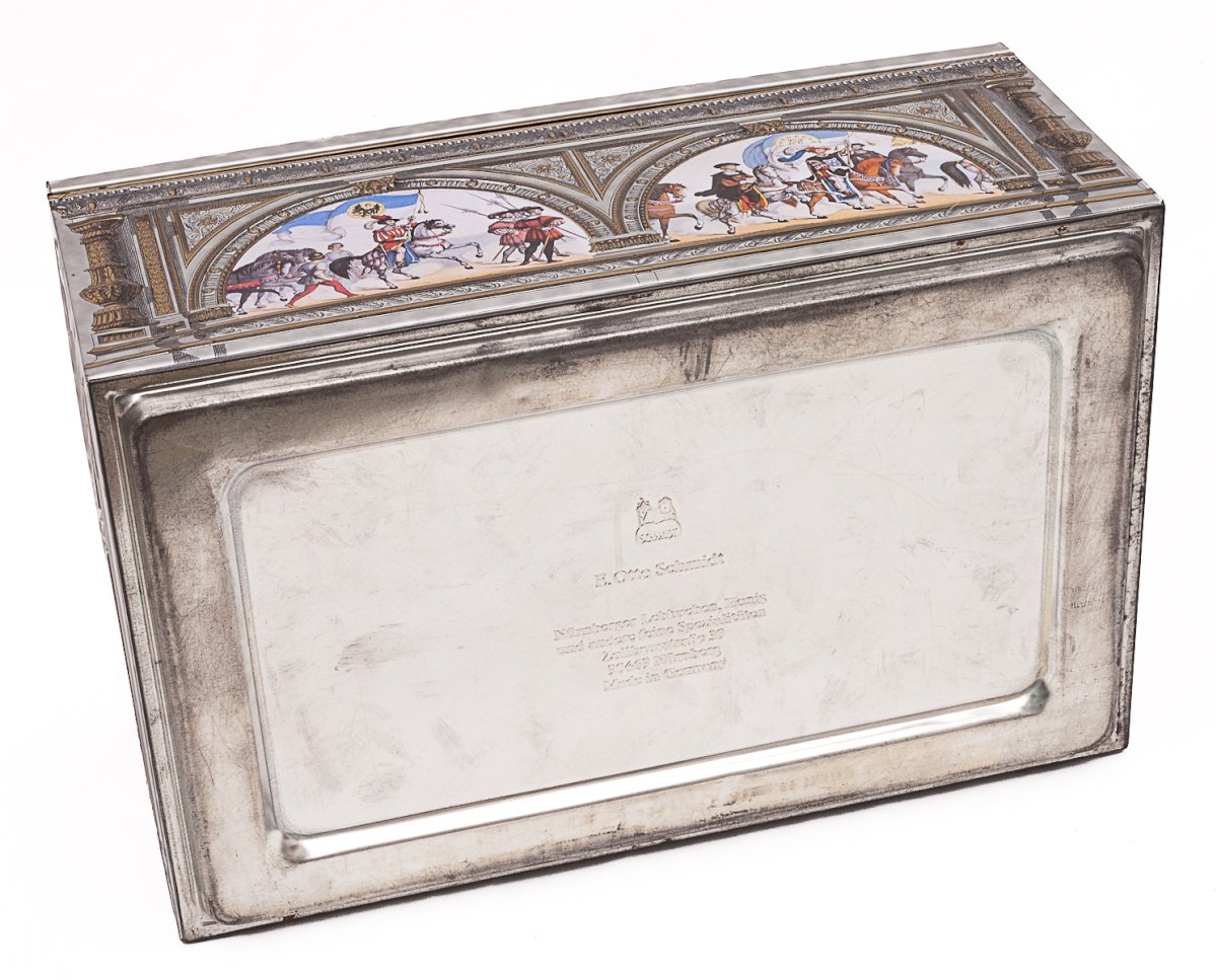 Tin cookie box by Otto Schmidt Silver/Multicolored Iron Illustration