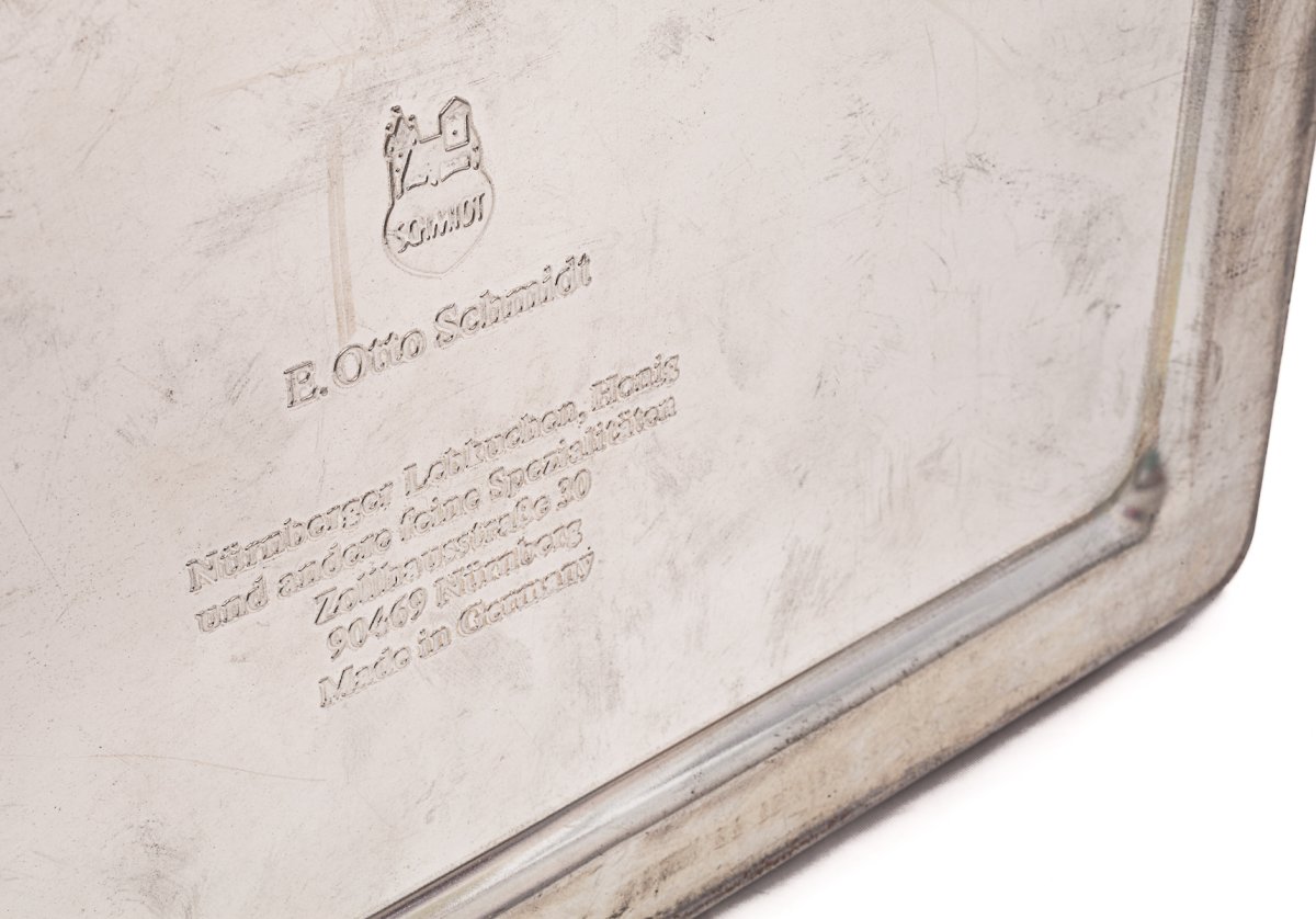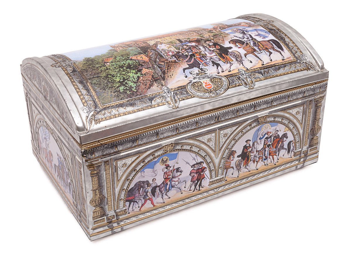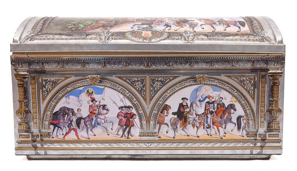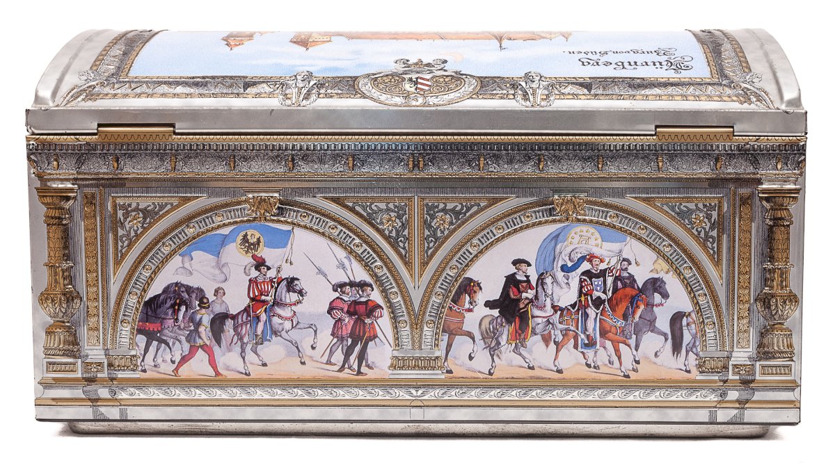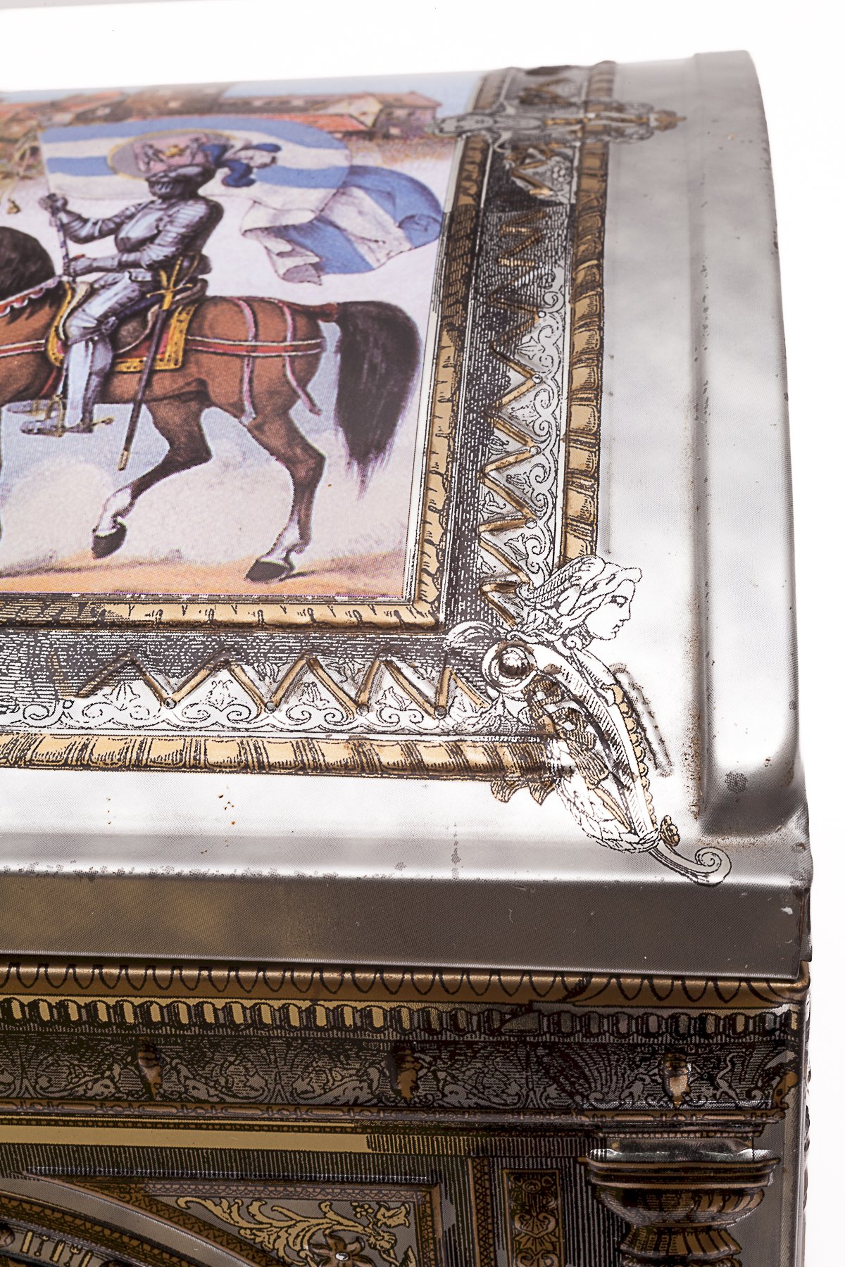 Tin cookie box by Otto Schmidt Silver/Multicolored Iron Illustration