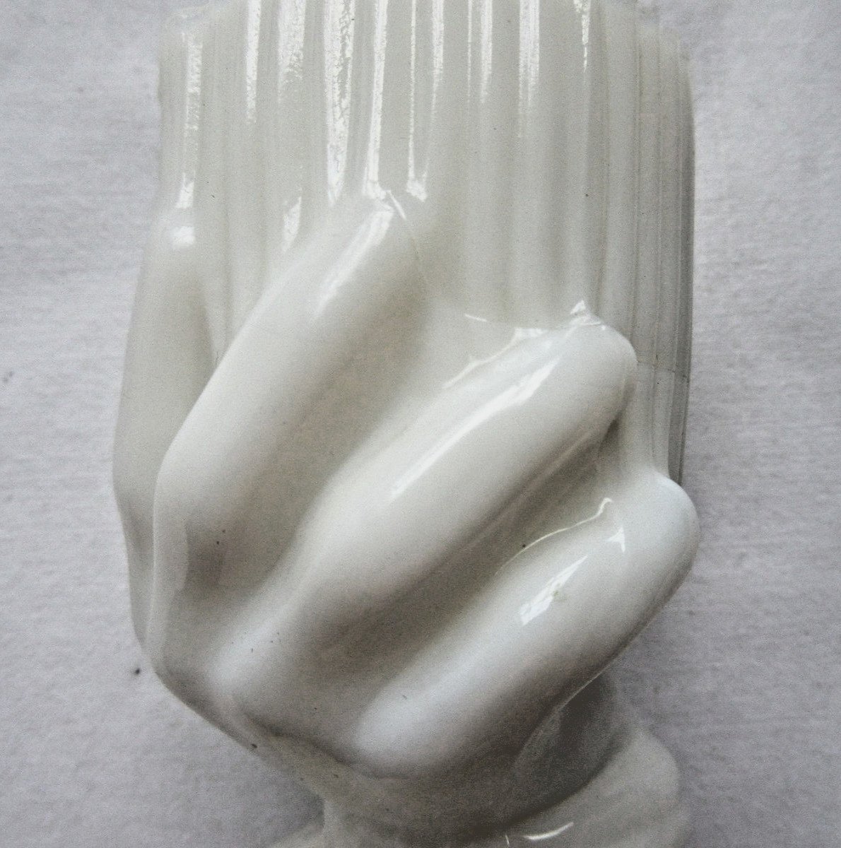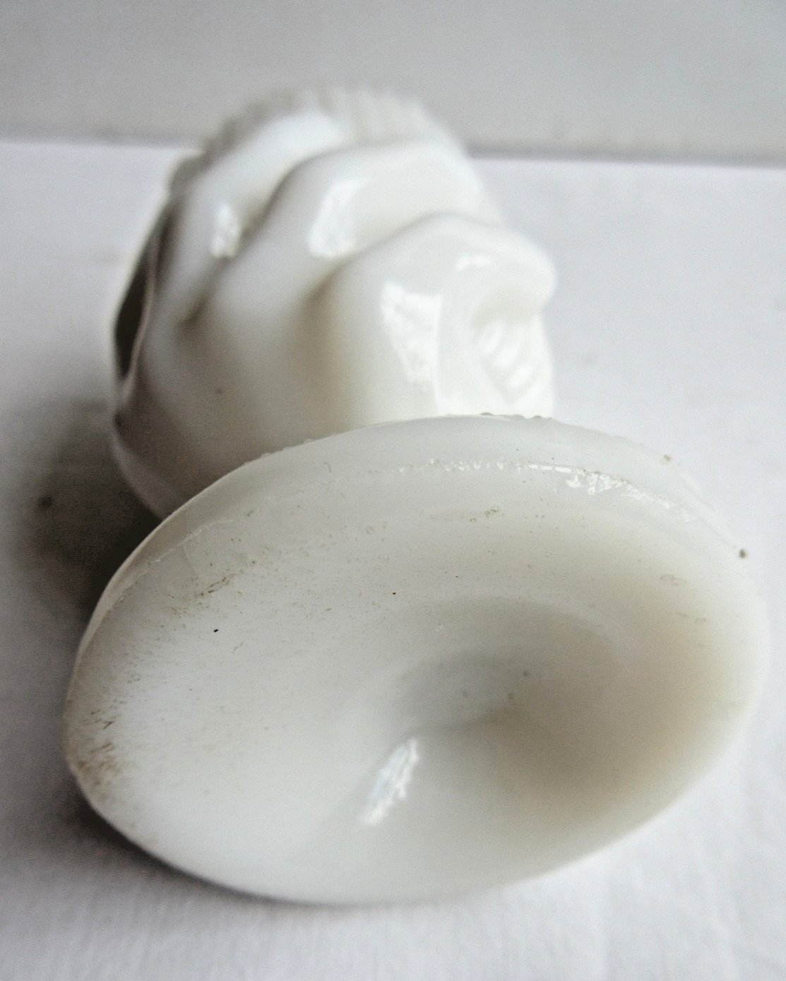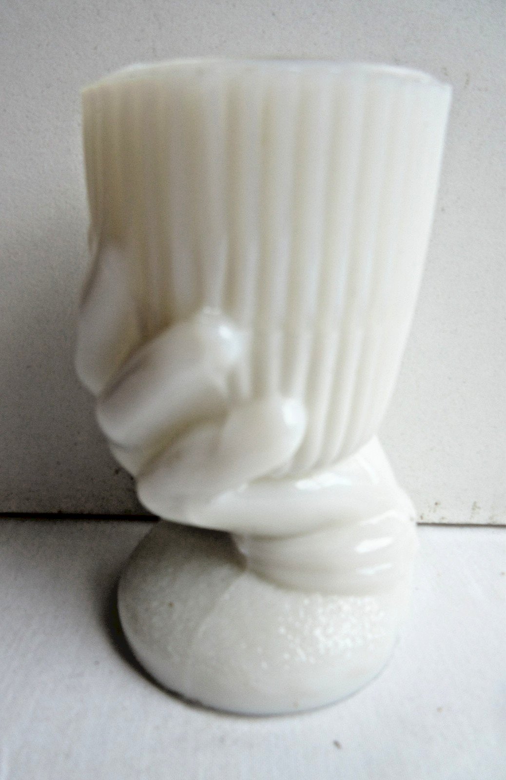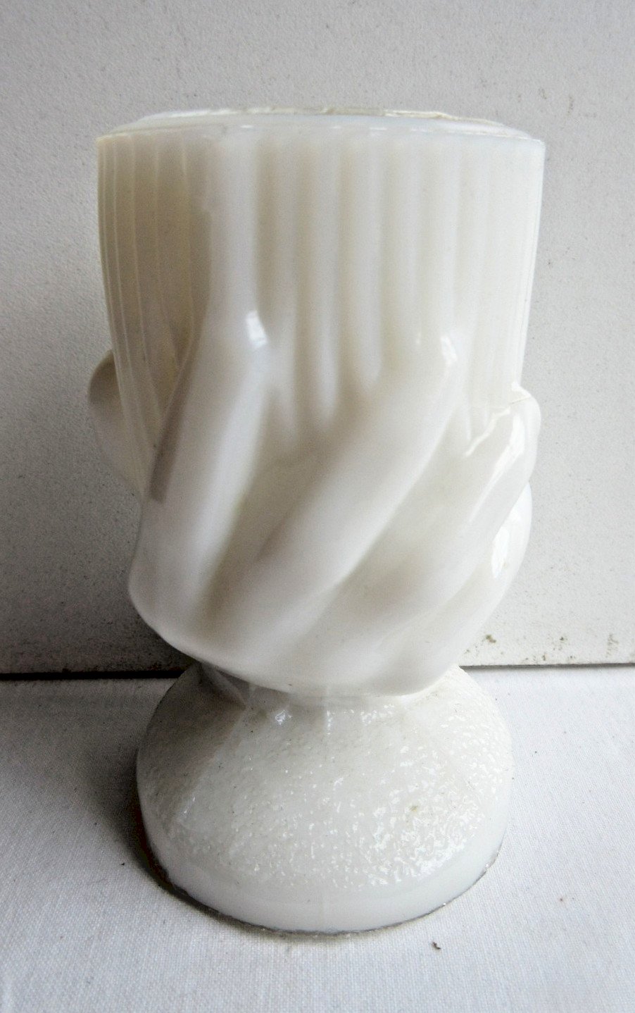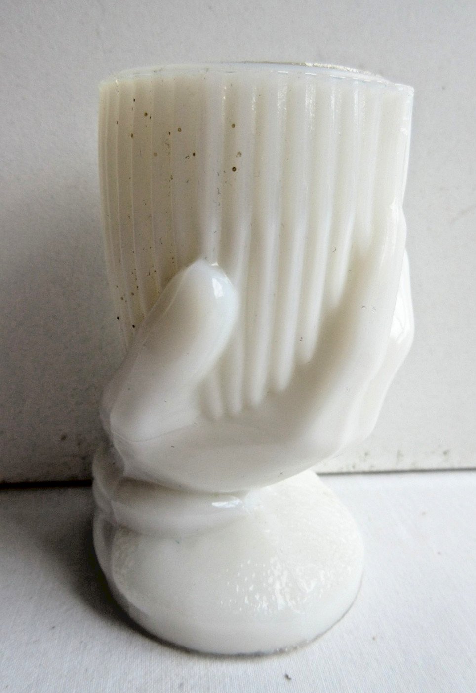 Worldwide sale. Toothpick holder or egg cup. It is made of white opaline and represents a container in a hand. 5 cm in diameter. Height: 9 cm. Production by Portieux or Vallérysthal. Very good condition.