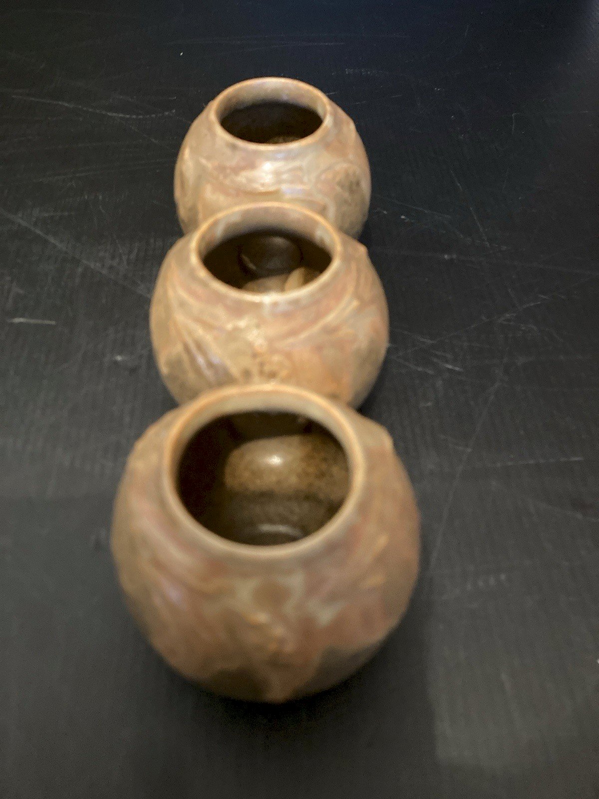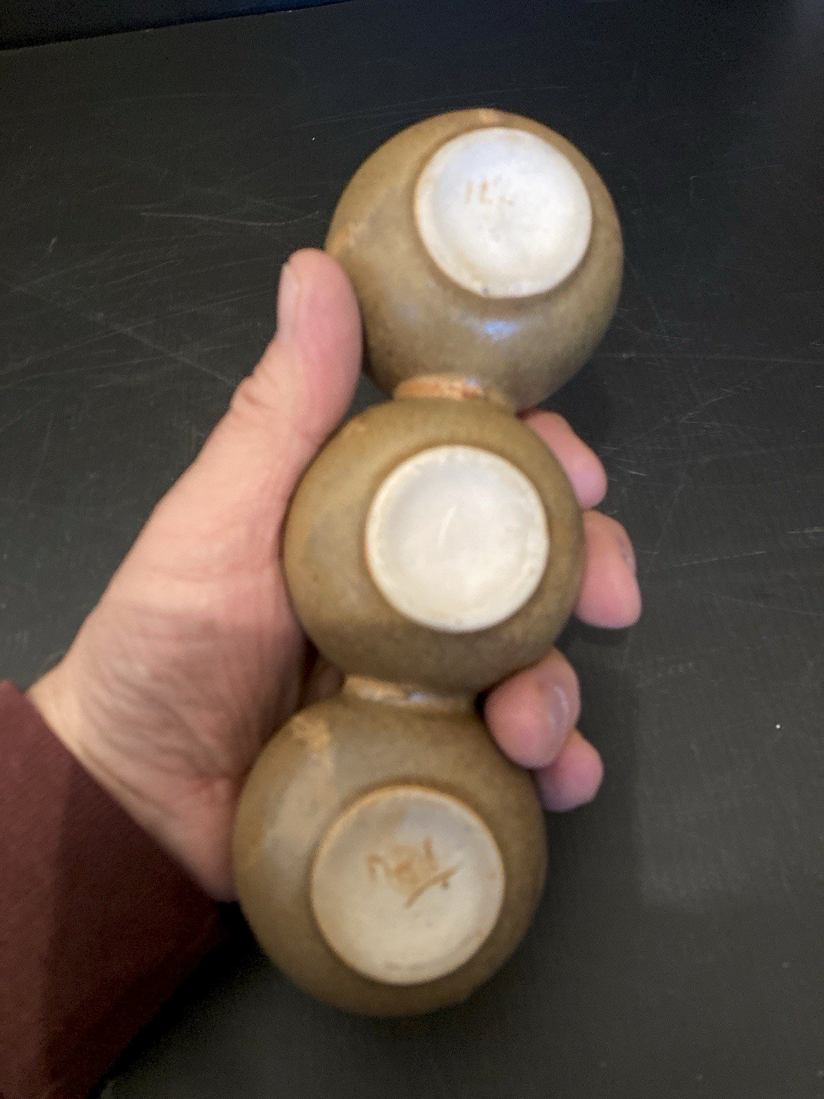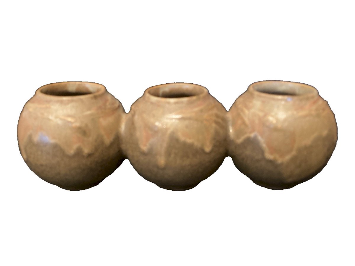 set of 3 glued stoneware pots from Denbac with drip decoration numbered 142 with Denbac signature Good condition height 6.50 cm length 20 cm weight 400 g inner diameter of the neck 3 cm Look at the photos above which will also serve as a description. Careful and secure packaging with the possibility of sending by post to be selected at the time of your purchase for calculating shipping costs. (otherwise classic Mondial Relay shipping) thank you all and happy hunting in my shop. Return accepted within 14 days from receipt, return in its original packaging, in its original condition, no refund for items returned broken or lost by the carrier, return at the expense of the buyer. Do not hesitate to add my shop to your favorites! Brand: Denbac Origin: Center of France
