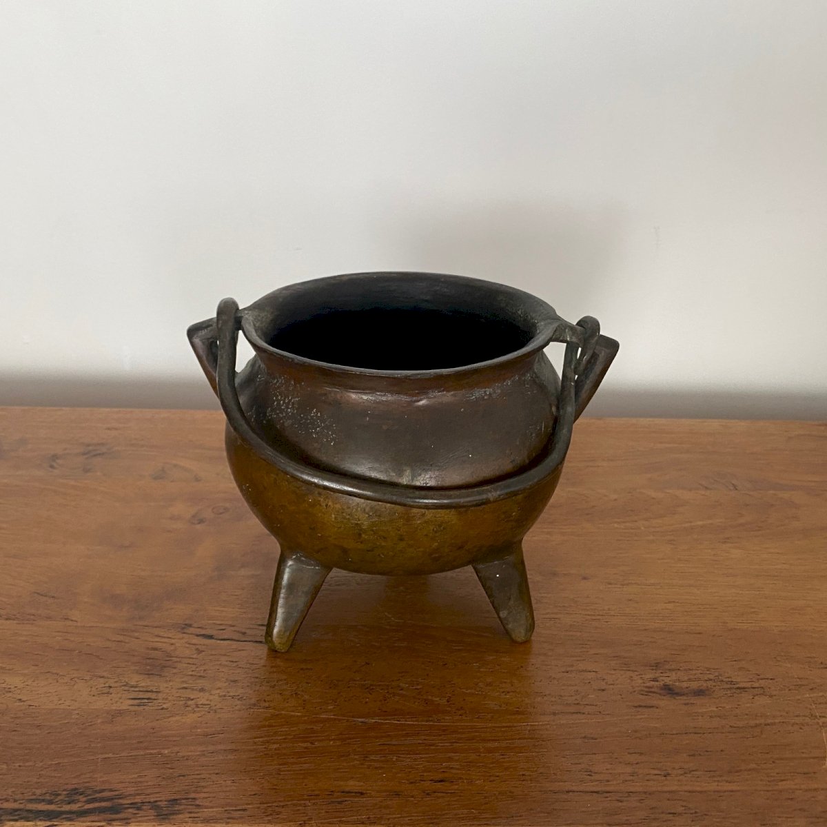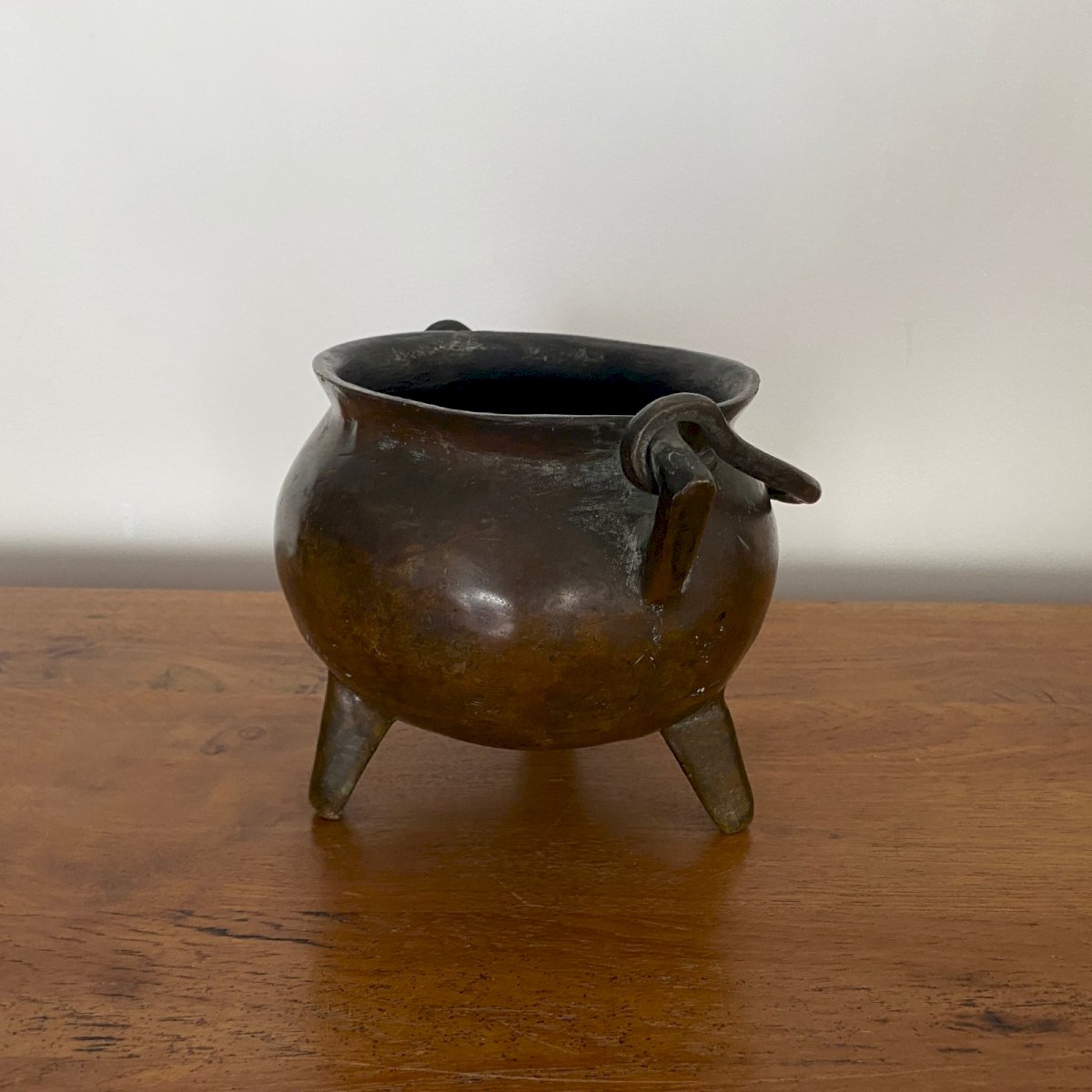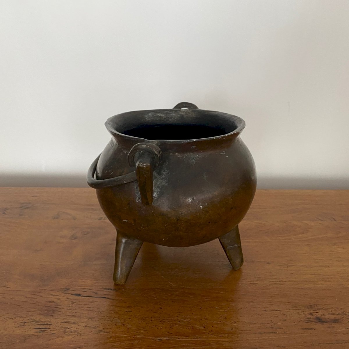 Tripod bronze pot with a handle XVIe M3751 This pot has a nice patina. It is in very good condition, noting classic signs of wear. Our photos allow you to appreciate the quality of the object. For the condition, please take a good look at the photos. Feel free to zoom in. The photos are an integral part of the description. Dimensions: Height: 15.5 cm Diameter neck: 14 cm Diameter base: 10 cm A: QT2RPP1W6P P: 1646717 I remain at your disposal for any questions. Type: Showcase object, Decorative Sub-type: Pot Height: 15.5 cm Material: Bronze Length: cm Width: 14 cm