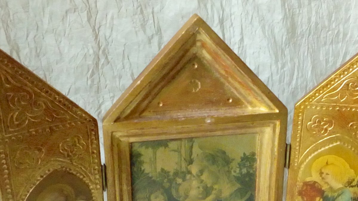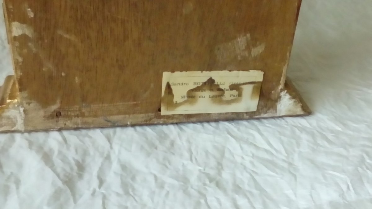 VERY BEAUTIFUL TRIPTYCH ICON GOLD WOOD VIRGIN AND CHILD REPRODUCTION BY SANDRO BOTTICELLI LOUVRE MUSEUM IN PARIS HEIGHT 26 cm WIDTH CLOSED 12.50 cm OPEN 25.50 cm SIGNS OF USE IN GOOD CONDITION Condition: Used Item that has been used. any possible imperfections. Type: Christianity Subtype: Devotional Object Country of origin: Italy Material: Wood