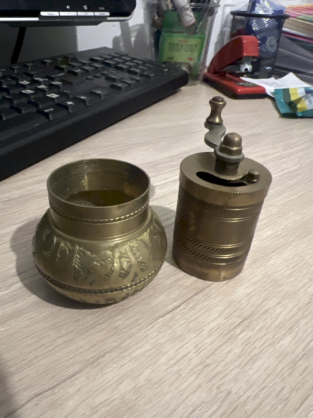 Turkish Brass Pepper Grinder Vintage Spice Mill with Crank (4 x 10 cm)