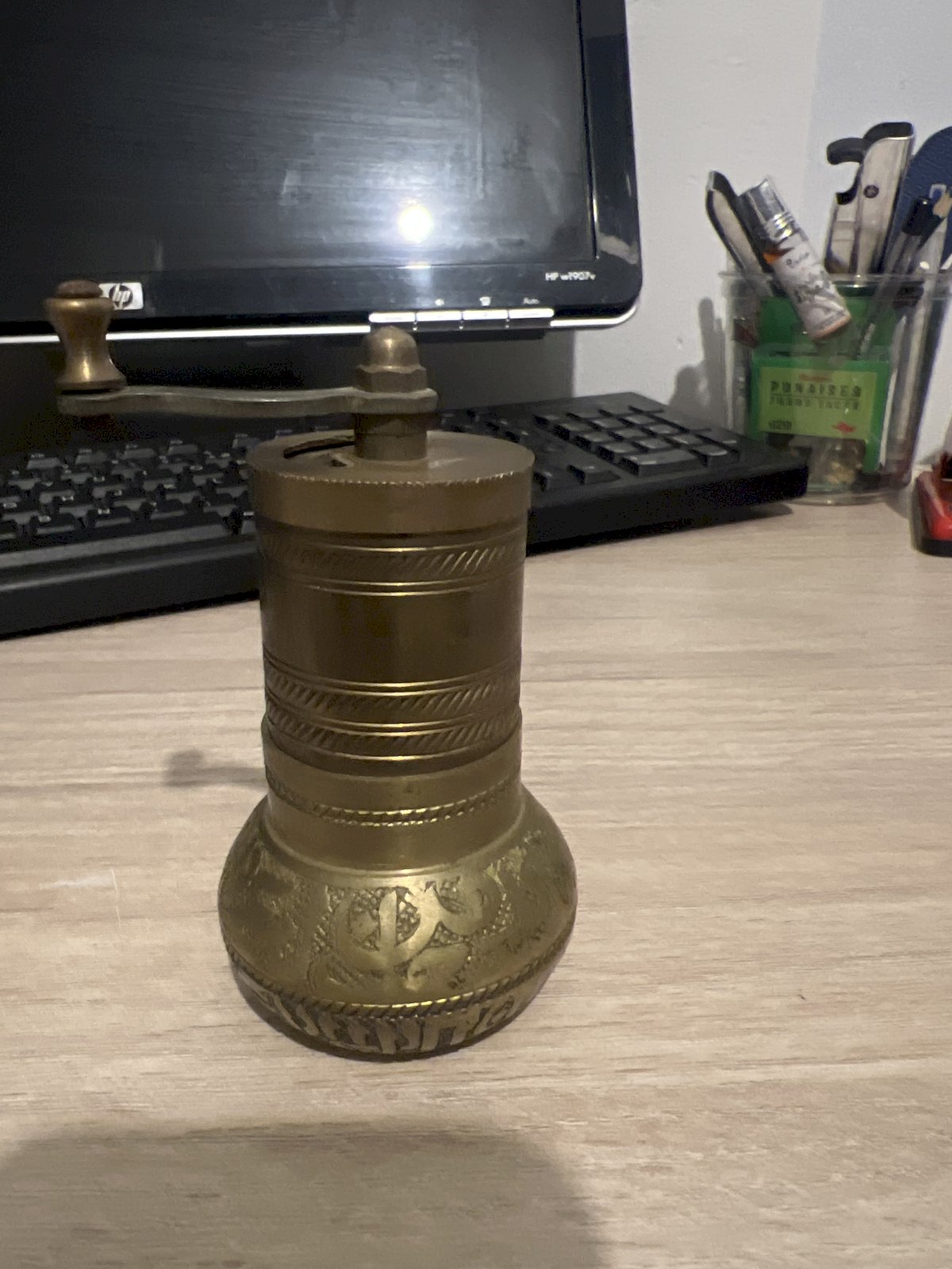 Turkish Brass Spice Pepper Mill with Vintage Crank (3.5 X 7 CM)