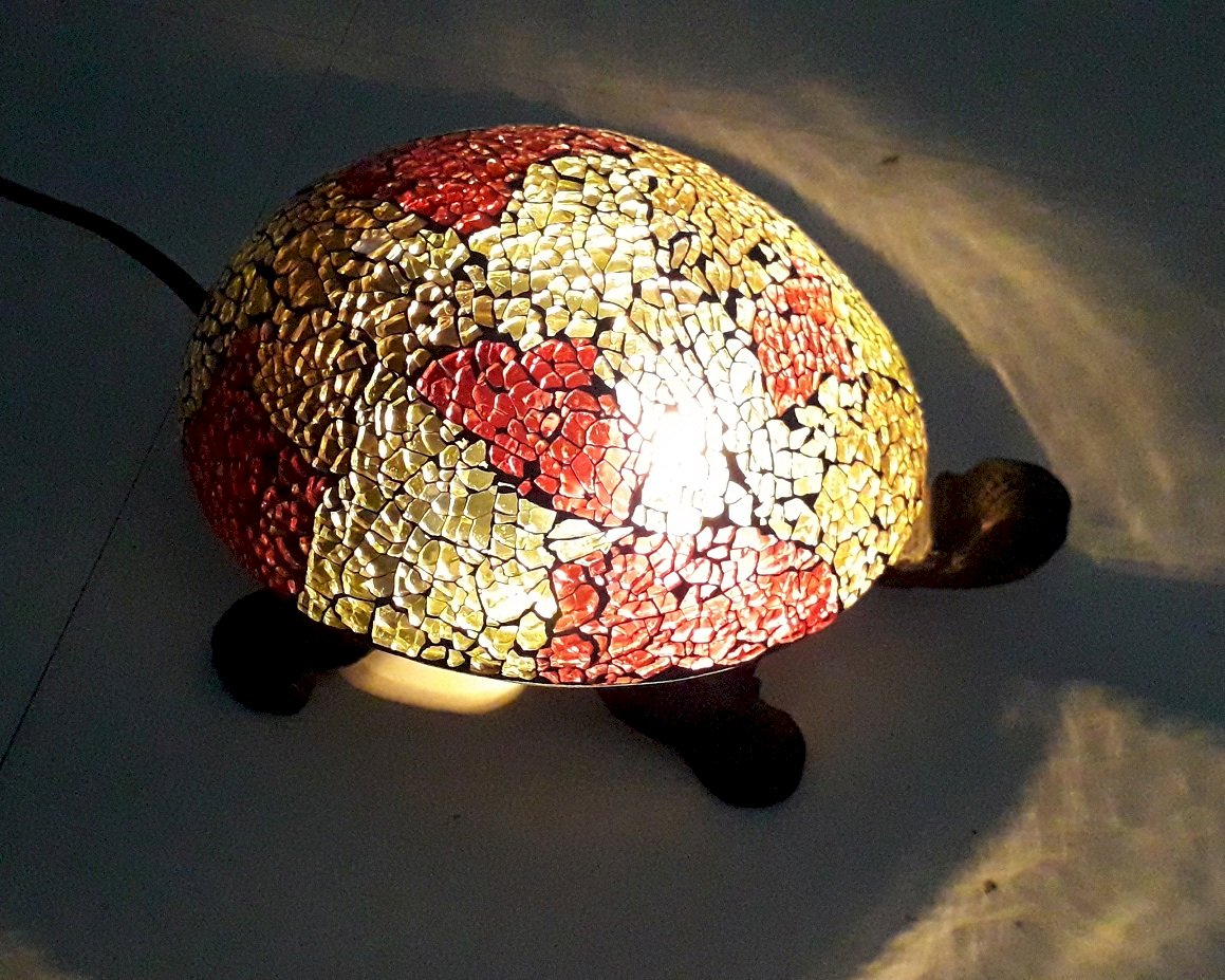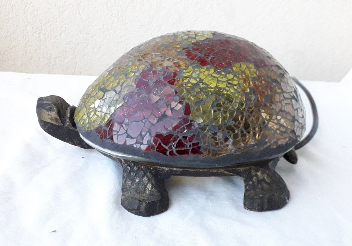 Turtle lamp, made of bronze (or cast iron?) for the structure and cracked glass for the shell.