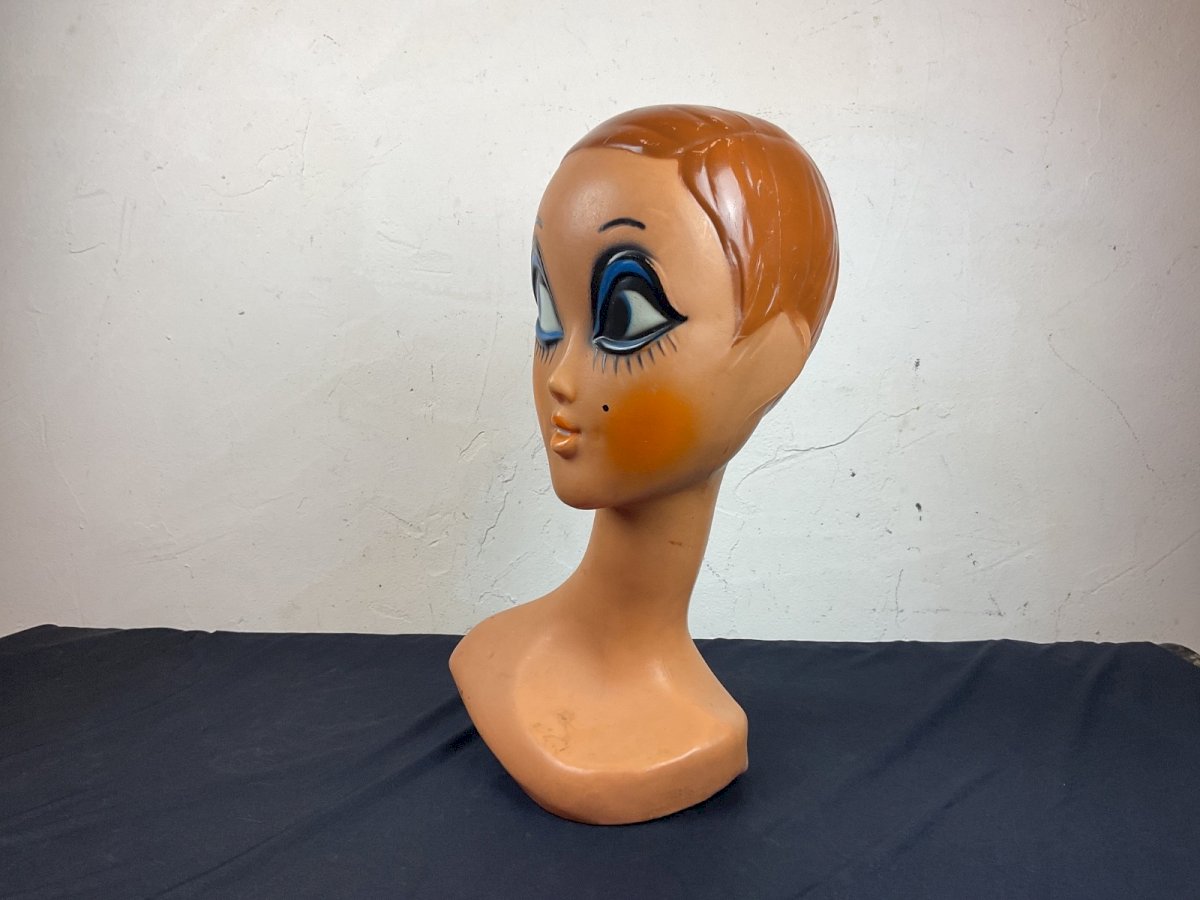 TWIGGY Hat Head mannequin wig Model HUARD 1971 Vintage Height: 40 cm Color: beige Type: HAT HEAD Material: PLASTIC