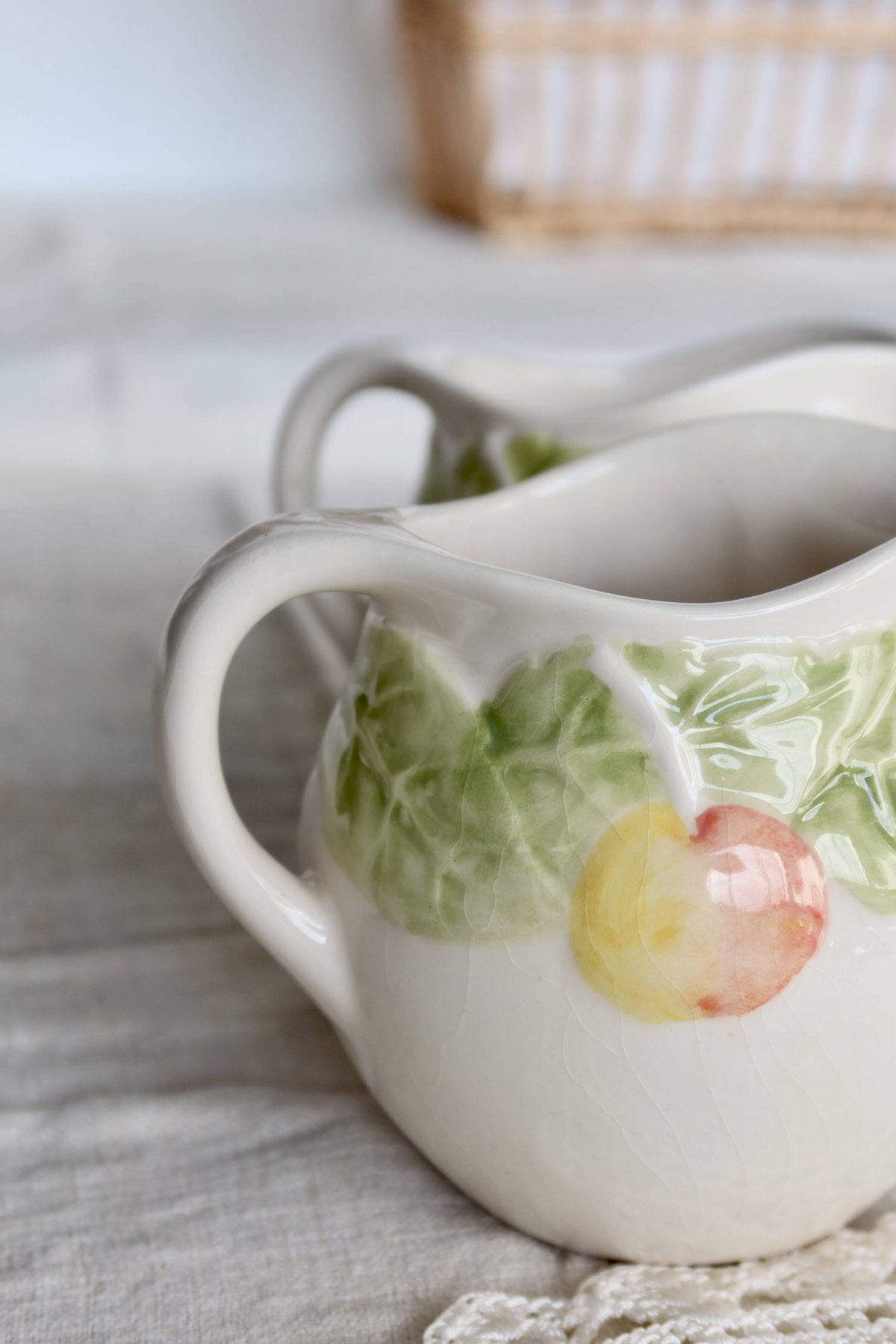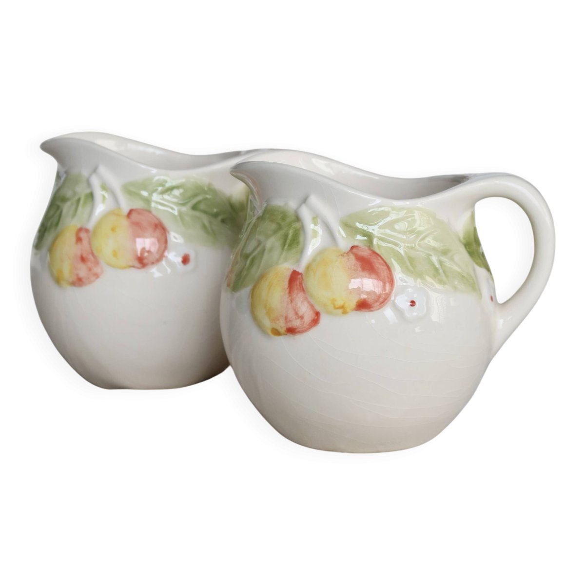 Two small vintage barbotine pitchers – Cherry pattern Ceramic