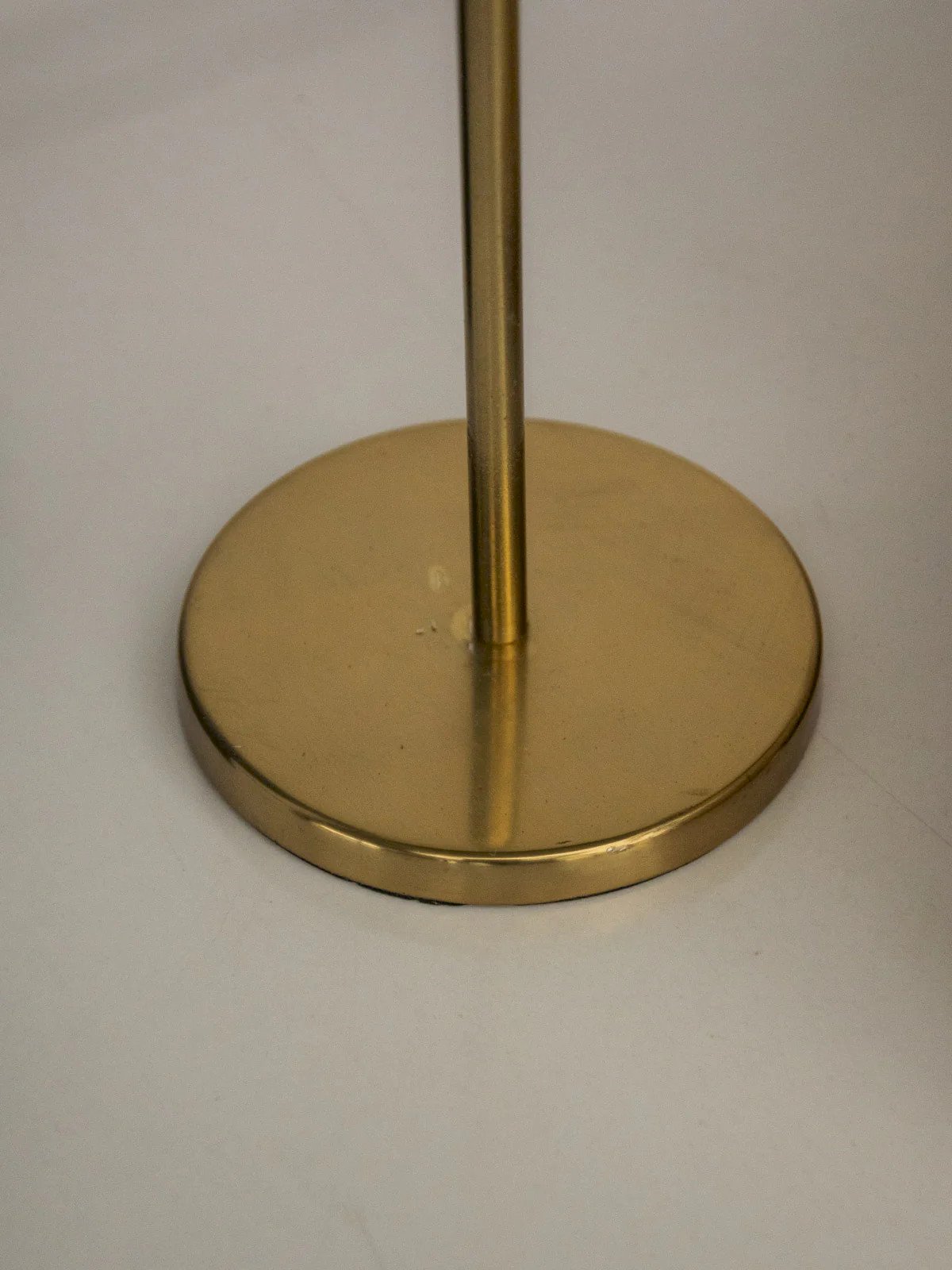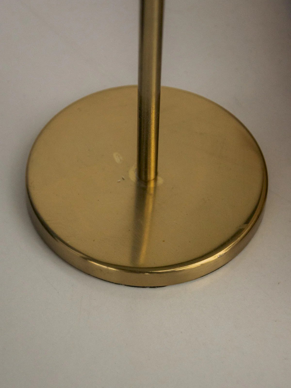 Add a warm glow to your interior with this golden metal candleholder. Its sleek silhouette and patinated finish evoke a style that is both classic and contemporary, perfect for dressing a table, a shelf, or a bedside table. Alone or in composition, it creates an intimate atmosphere conducive to quiet evenings or convivial moments. There are slight signs of wear present. Height: 30 cm Diameter: 9 cm Condition: Used: Item that has been used. Item showing some signs of superficial wear, fully operational and functioning properly. It may be a demonstration model or an item returned to the store after a short period of use. Any imperfections included. Brand: Debongout Type: Thrifted product Material: Metal Style: Contemporary