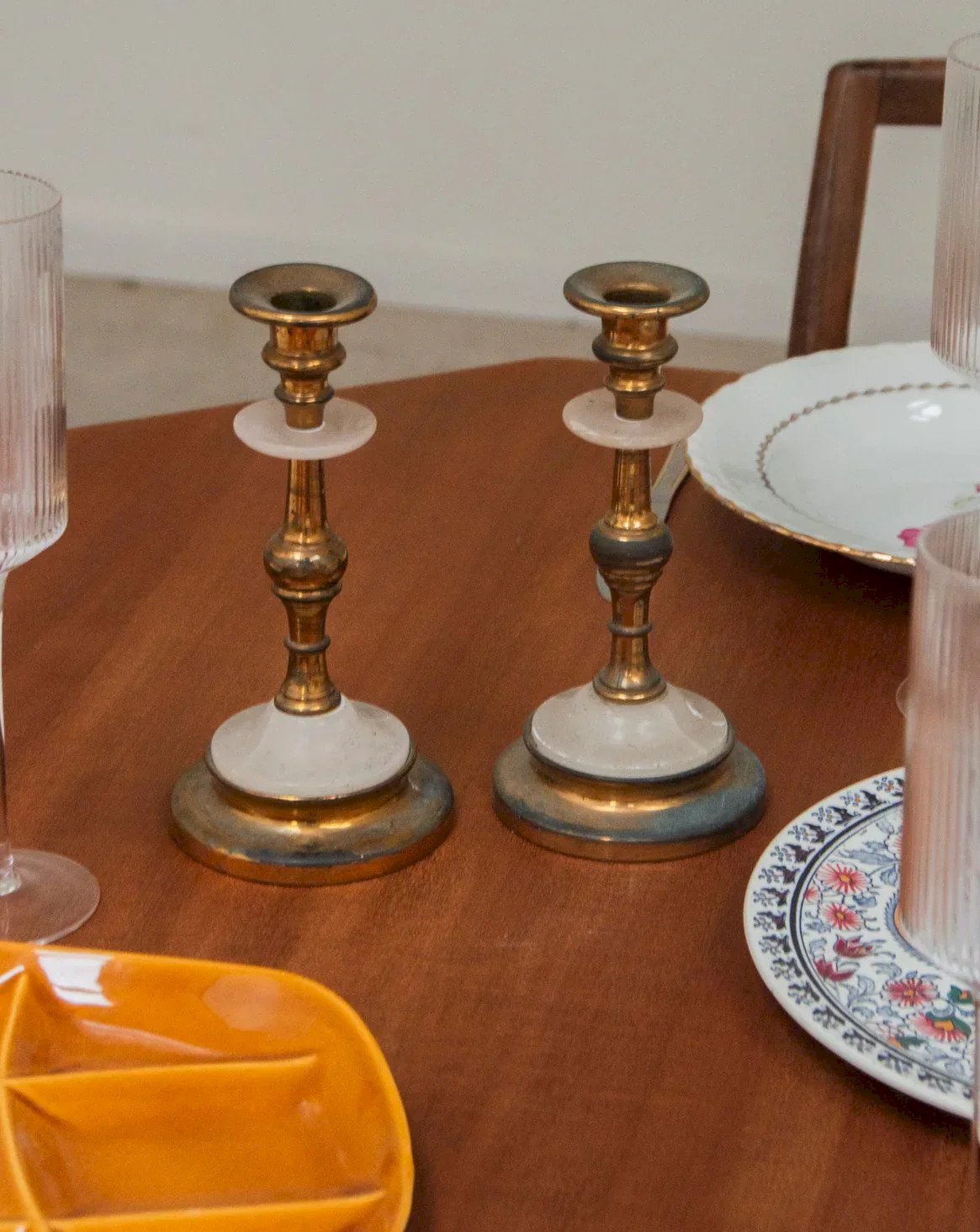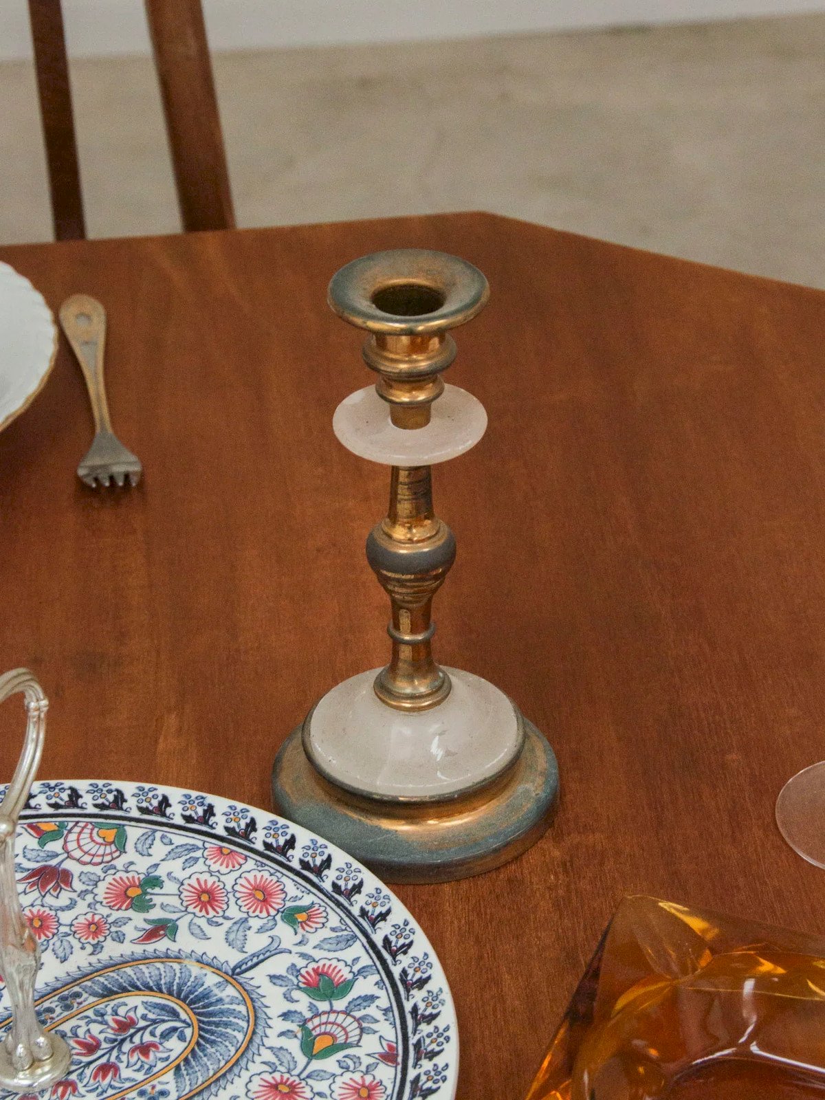 Enhance your interior with these brass and polished transparent stone candle holders, designed to showcase the flame and the material. The contrast between the warmth of brass and the purity of stone creates a balanced silhouette, punctuated by pretty, intricate details. Placed at the center of a table or on a console, they bring a soft light and a refined touch to both contemporary and classic settings. Their presence transforms a moment into an intimate experience. Height: 20 cm Base diameter: 10 cm Condition: Used: Item has been utilized. Item shows some signs of superficial wear... Used: Item has been utilized. Item shows some signs of superficial wear, fully operational and functioning correctly. It may be a display model or an item returned to the store after a short period of use. any potential imperfections. Brand: Debongout Type: Vintage product Material: Brass, Stone Style: Contemporary