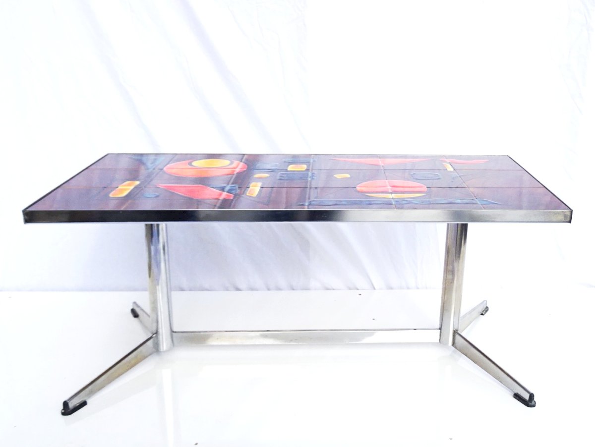Vallauris table, reference La Grange, from Vallauris, 1960s. General very good condition, tiny ceramic chip on the edge. Dimensions: approximately H37 x W90 x D46 cm.
