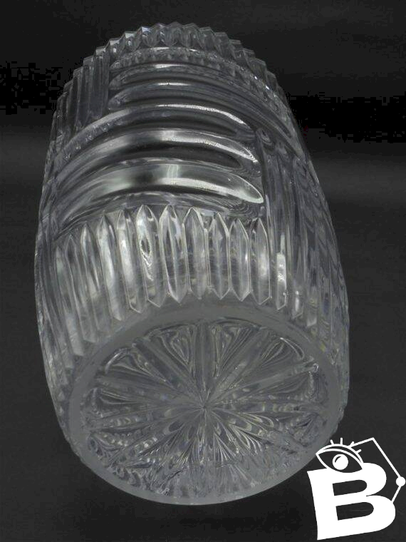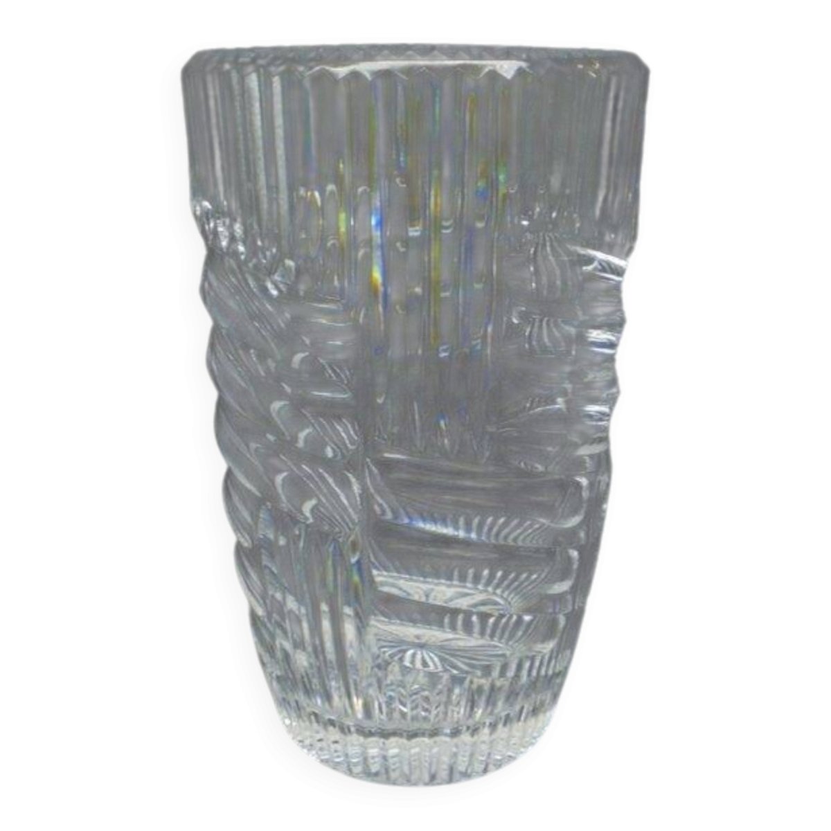 Crystal vase, it has no signature. Numerous small chips and a scratch. Height: 25 cm. Diameter: 15 cm. Weight: 2.850 kg. L: 15 W: 23 H: 25