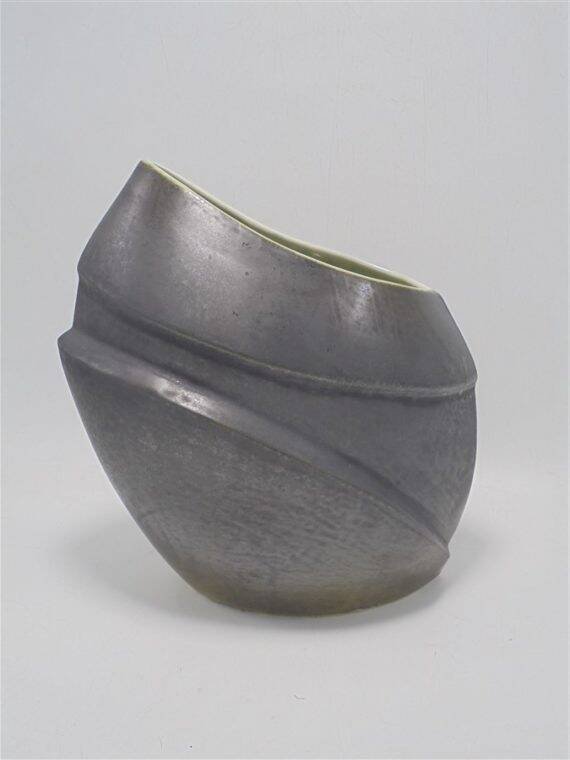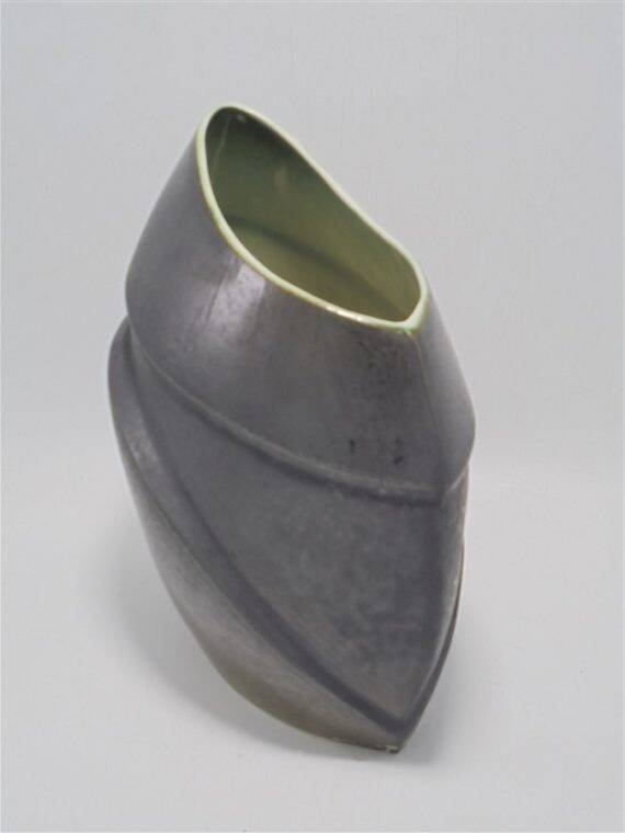 Ceramic vase signed Estelle Lo Verso. Anthracite exterior, water green interior. Dimensions: 20 x 12 x H 21 cm Weight: 570 g L: 20 l: 12 H: 21