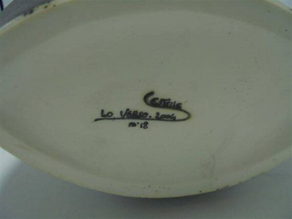 Original multi-colored terracotta bottle vase signed under the foot and dated 1991 in good condition