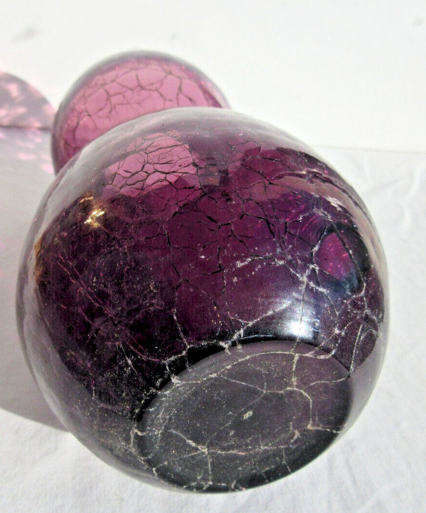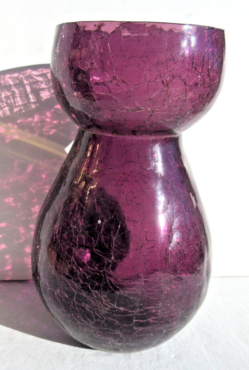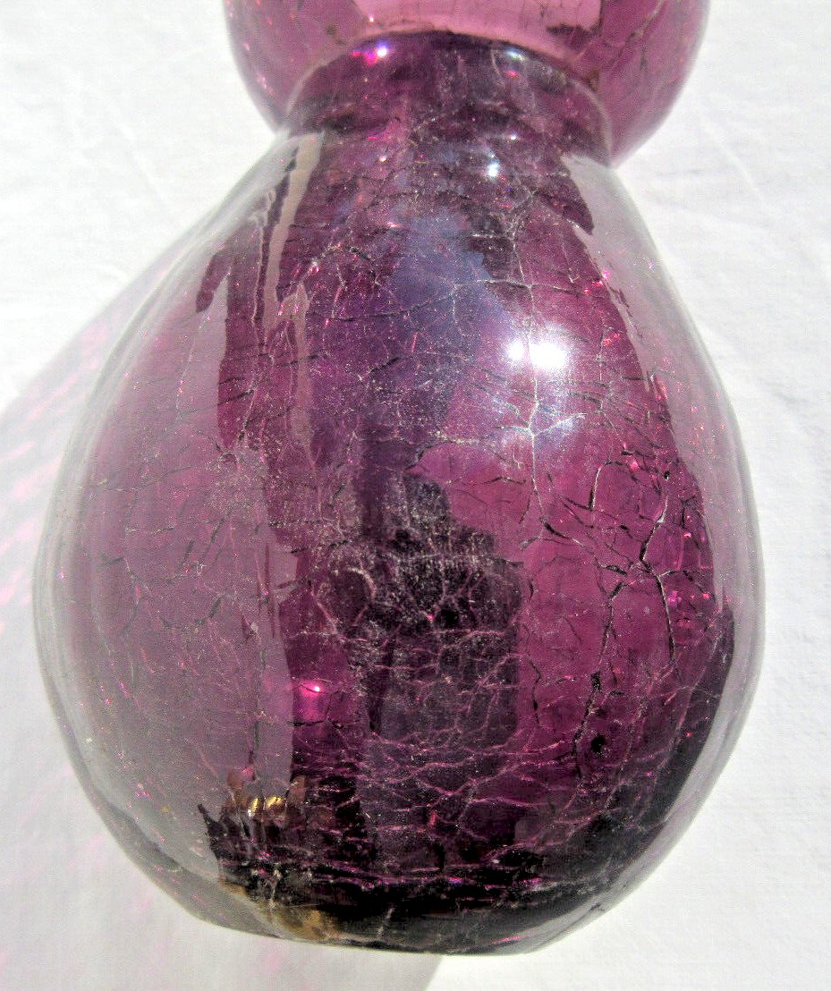 Worldwide sale. Art Deco glass bulb vase. Tall and well-shaped to hold flower roots, with a well-defined neck to support the bulb. The glass is finely cracked. Neck diameter: 7 cm and body: 10 cm. Height: 15.5 cm. Good condition. Very beautiful, refined, and original vase to collect. Information: 05-49-56-63-75.