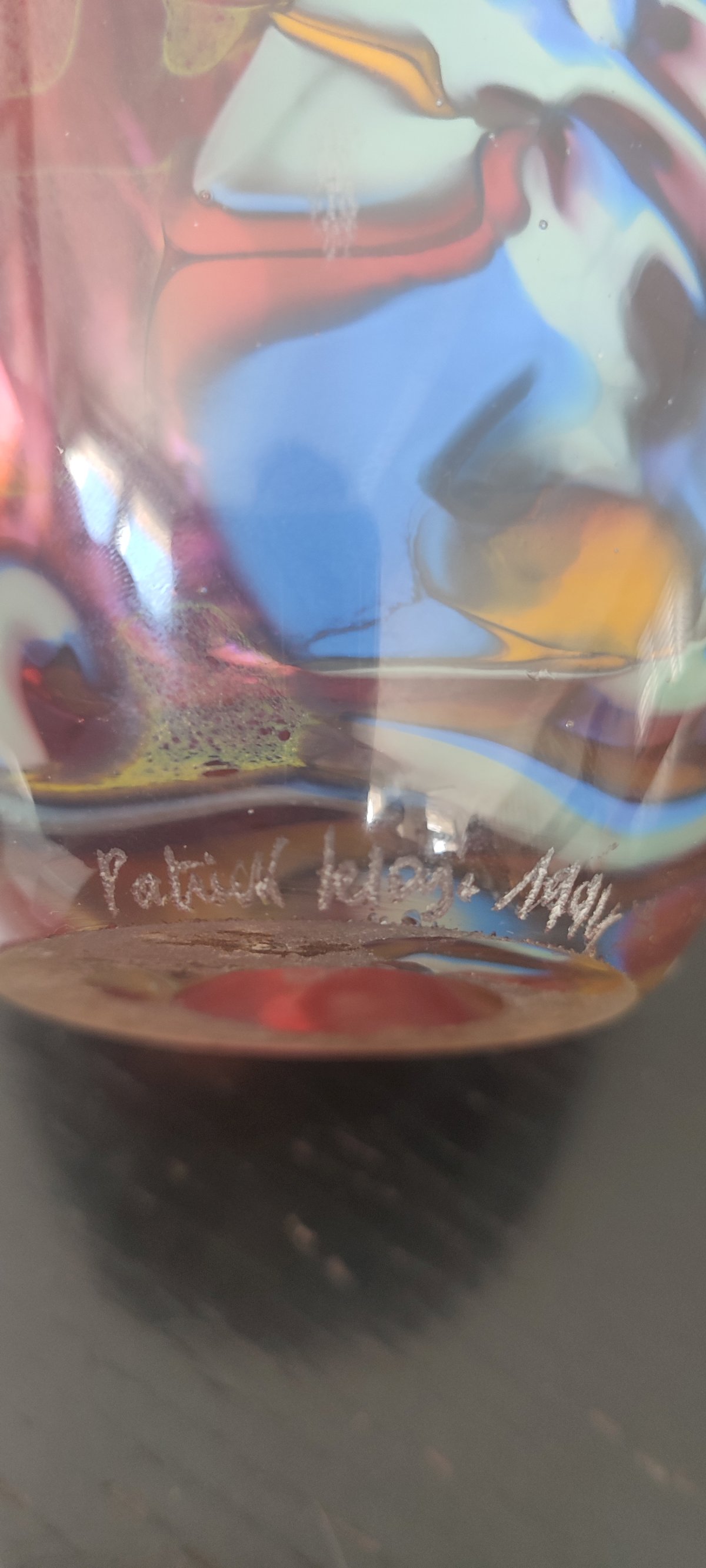 Unique piece signed by Patrick Lepage (1949-2015), a major French master glassmaker and founder of the Verrerie d'Art d'Amboise.