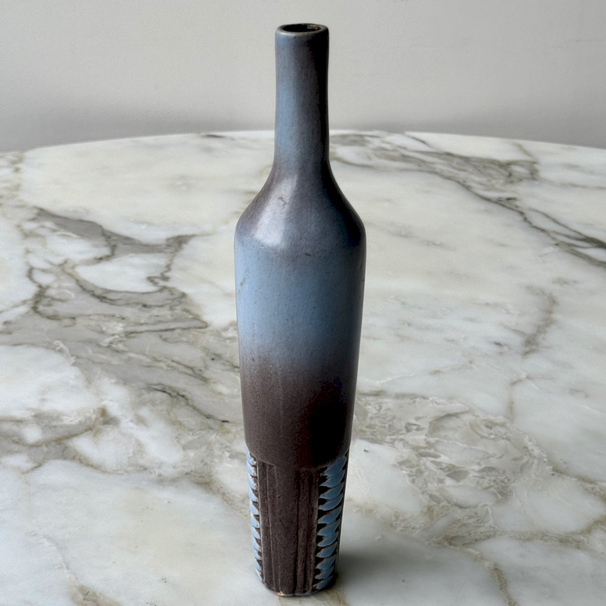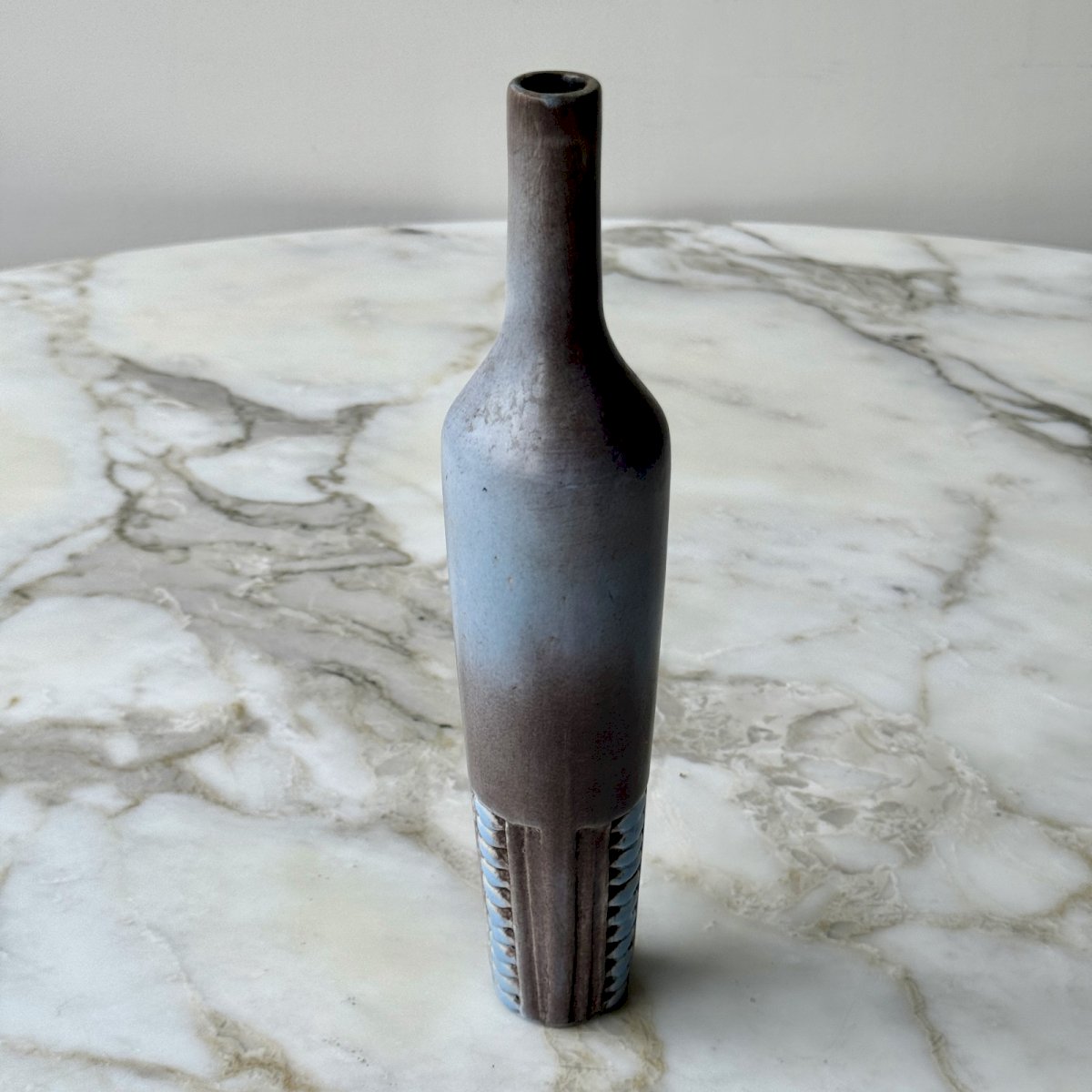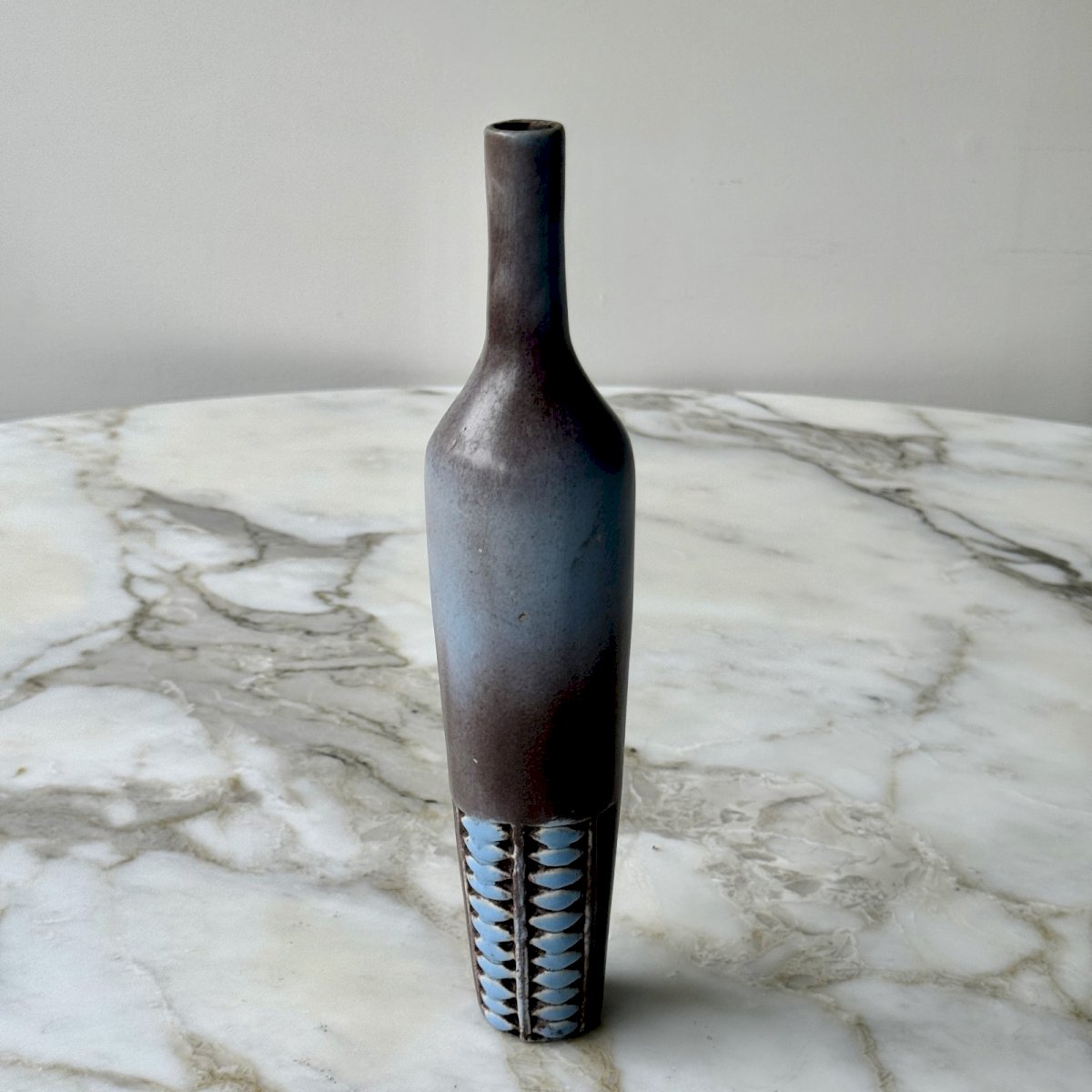 Flower vase in stoneware 1960 Vallauris M3978 This stoneware flower vase in the shape of a bottle dates back to the 1960s. The signature needs to be identified. In terms of condition, there is a small repair at the bottom. Our photos allow you to appreciate the quality of the item. For the condition, please take a close look at the photos. Feel free to zoom in. The photos are an integral part of the description. Dimensions: Height: 26 cm Width: 5.6 cm Top diameter: 2 cm Base diameter: 3.8 cm Weight: 300 g A: EQYF97NRM1 P: 1695858 I remain at your disposal for any questions. Country of origin: metropolitan France.