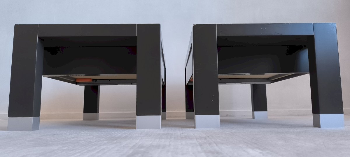 Very beautiful large pair of bedside tables Luméo designed by Peter Maly for Ligne Roset. Despite signs of use on the paint, they are in perfect functional and structural condition.