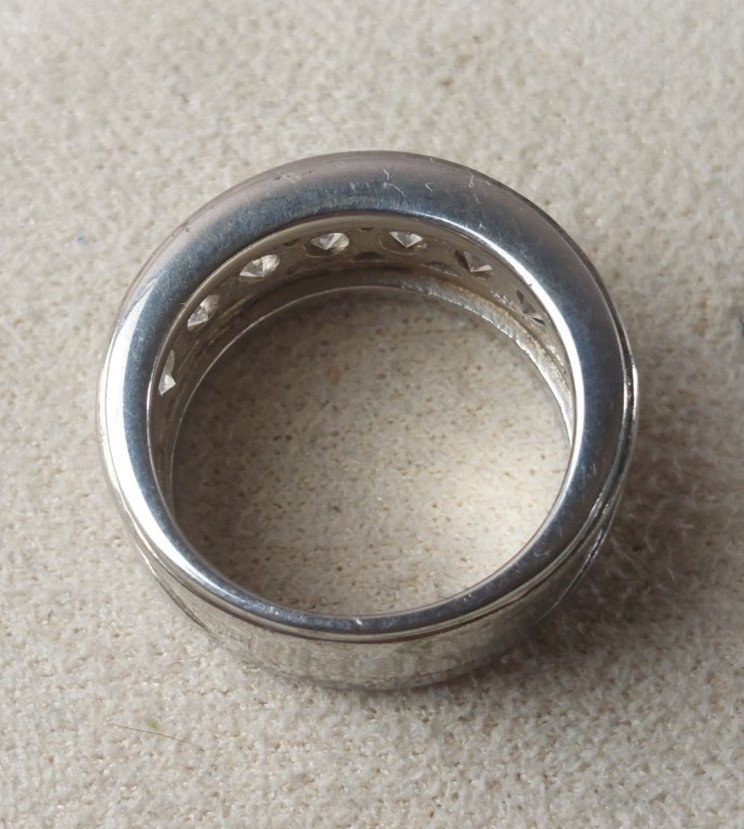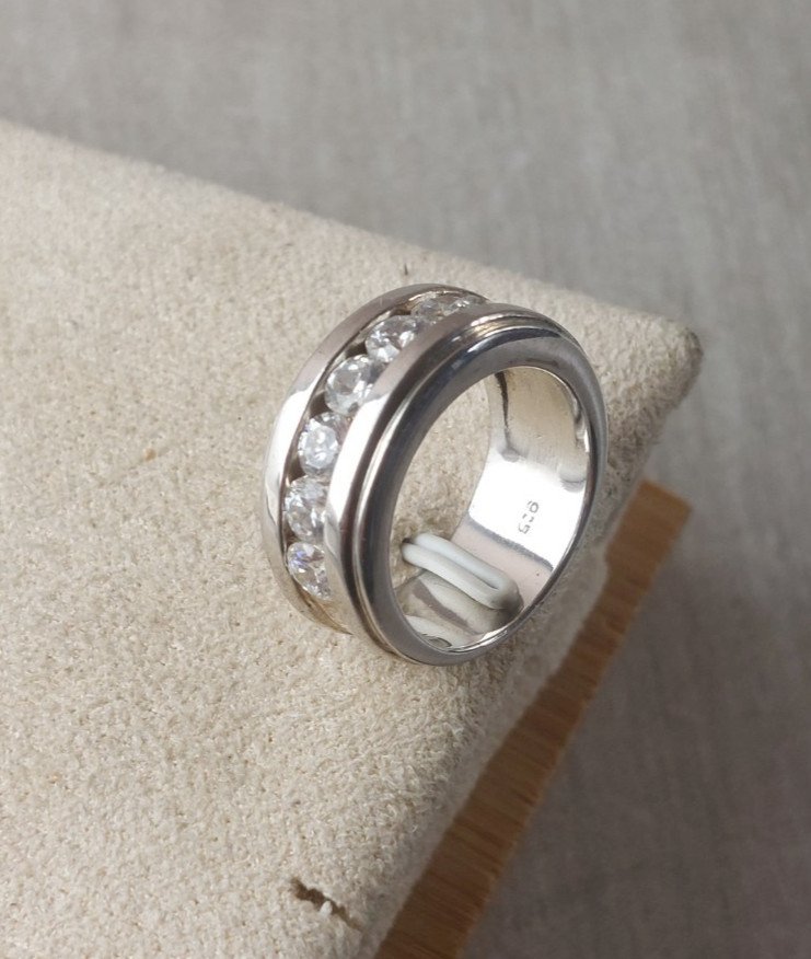 Very beautiful ring, decorated with rhinestones/zircon, made of solid silver in good condition marked 925 + another hallmark width 0.9 cm size 54 or 1.77 cm total weight 10.49 g see photos Check out my other items! Reduced shipping costs for combined purchases Condition: Used Item that has been worn. Any imperfections. Size: 54 Metal: Solid silver