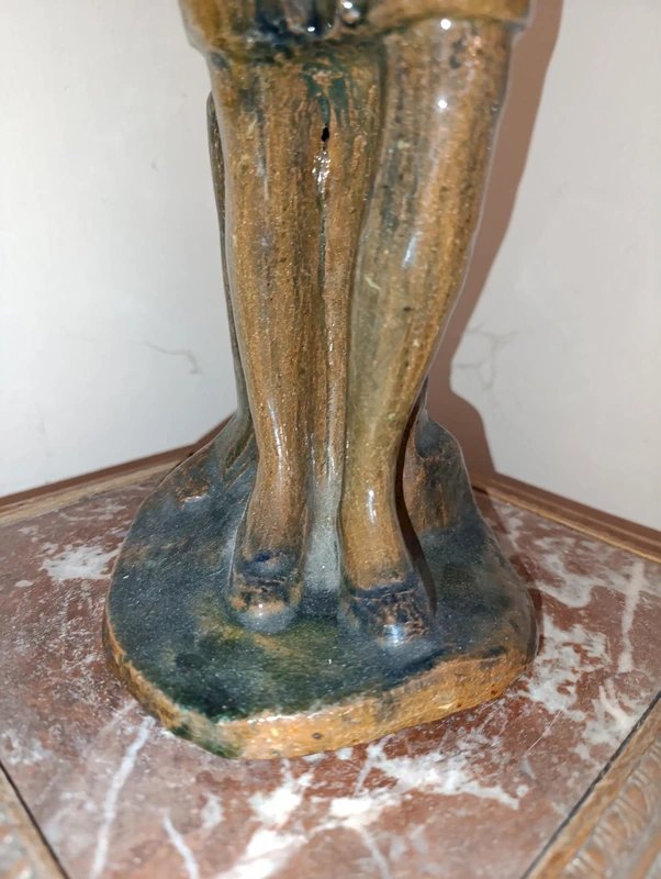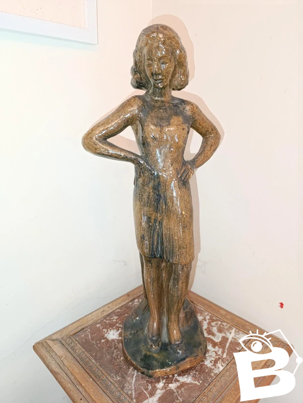 very beautiful terracotta sculpture of a woman unmarked but dated 43 in good condition artist to be recognized beautiful sculpting work height 43cm