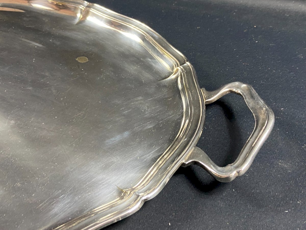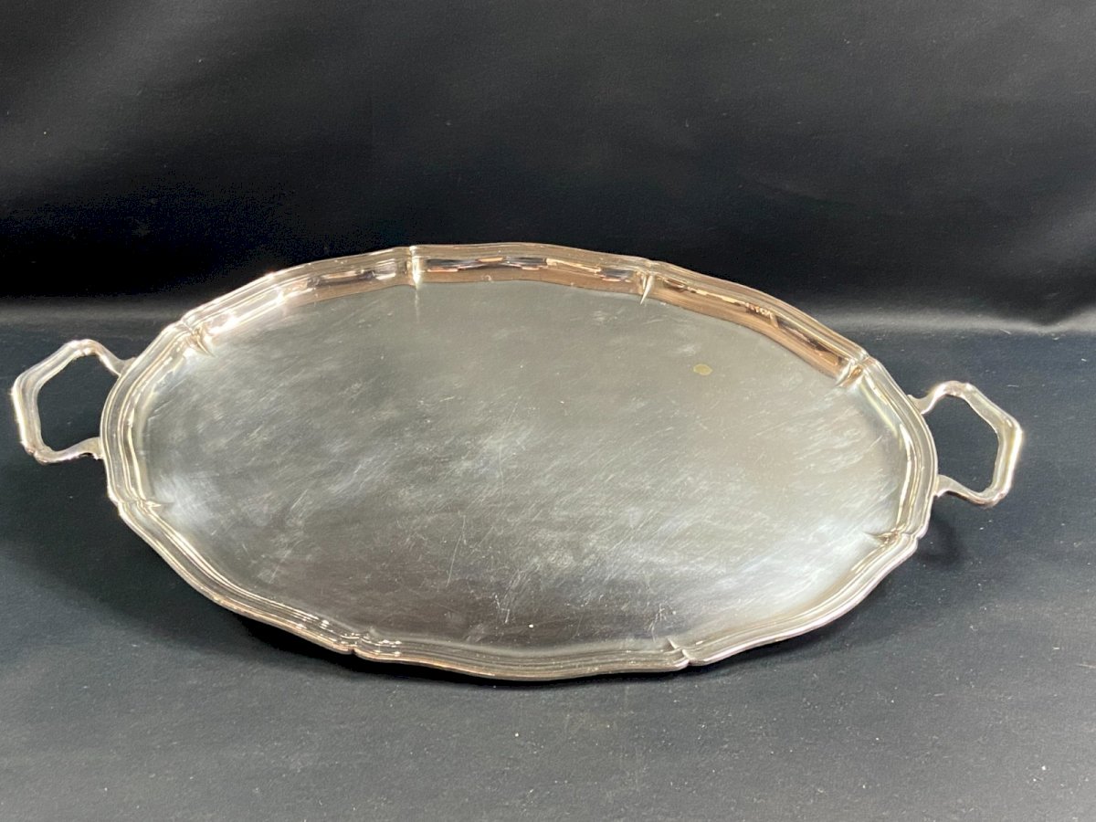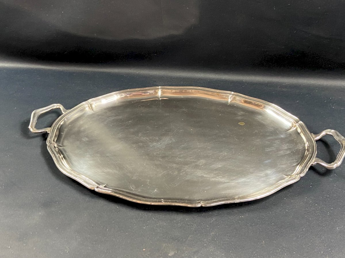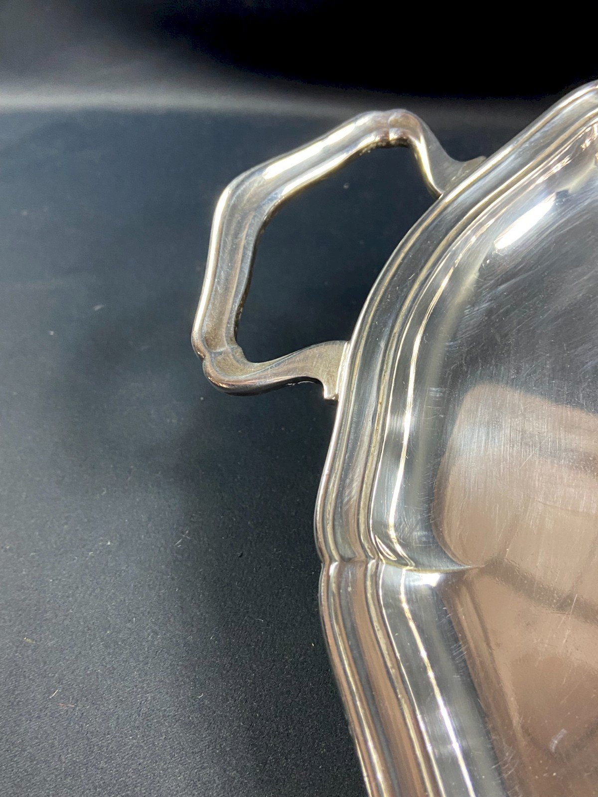 Very large silver-plated serving tray with metal handles in Louis XV style Maximum dimensions: Wingspan with handles 66 x wingspan without handles 55.3 x 40.8 cm Very nice material density Weight: 2094 grams I note the presence of fine usual scratches as well as some signs of wear Ultra-secure shipping worldwide - Order pickup possible by appointment, 7 rue Notre-Dame 18000 Bourges. - Possibility of grouping within the same package: please contact me beforehand so that I can calculate your optimized shipping costs. Authenticity: Original Type: Tableware, Kitchen Origin: France Country of origin: France Sub-type: Tray Material: Silver-plated Style: Louis XV, Neoclassical