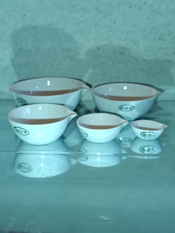 very rare set of 5 small Pharmacy Jugs style Apothecary GDV in good condition with some normal signs of wear due to age the largest measures 8.5cm in diameter and 3.5cm in height