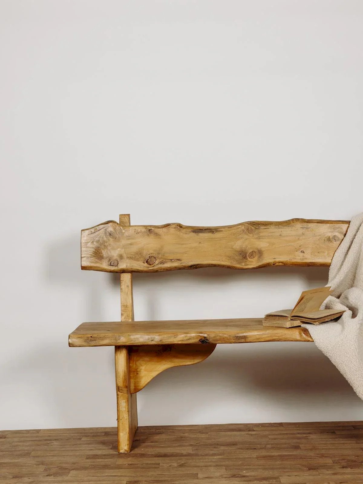 This brutalist bench made of solid oak is an exceptional handcrafted piece from the 70s. Fully varnished and naturally cerused, it showcases the raw beauty of the wood, with its charming knots making it a unique piece. The backrest and seat, carved from solid planks, reinforce its brutalist chalet-style character. Its solid oak construction provides great strength and significant weight, highlighting its authenticity and durability. Two are available. Depth: 50 cm Width: 150 cm Seat height: 46 cm Total height: 89 cm Condition: Used: Item that has been used. Item showing some superficial signs of wear, fully operational and functioning correctly. It may be a demonstration model or an item returned to the store after a short period of use, with possible imperfections. Color: Multicolor Height: Oak Width: Benches Brand: Debongout Type: Vintage product Material: Oak Style: Contemporary