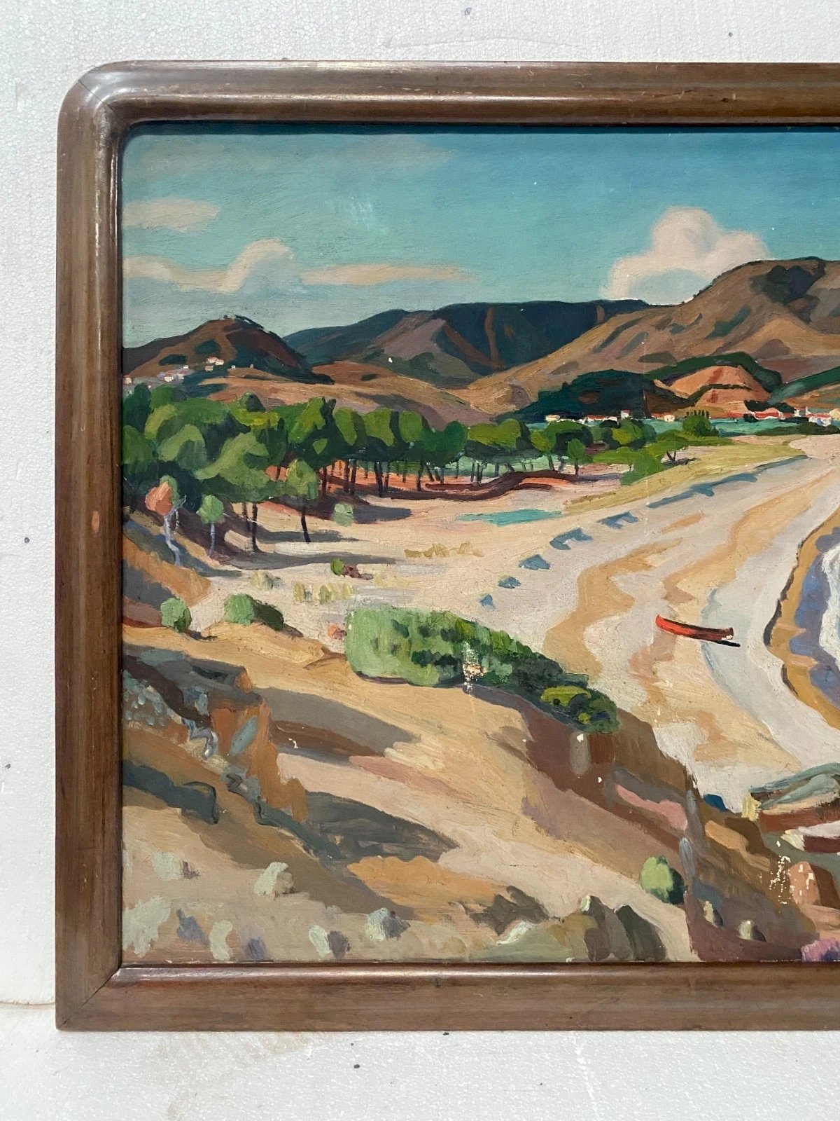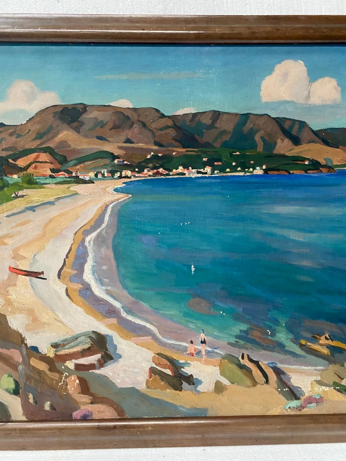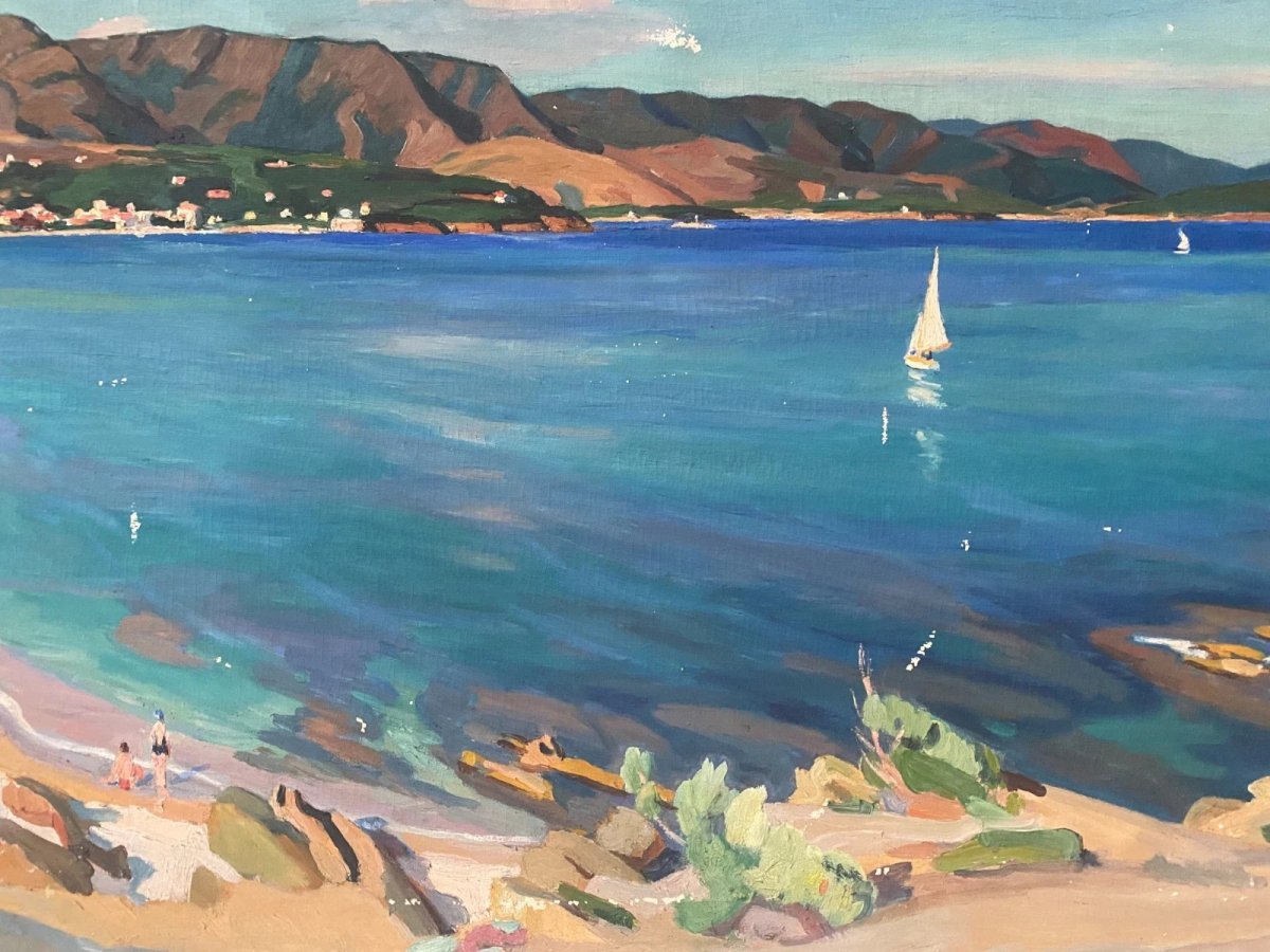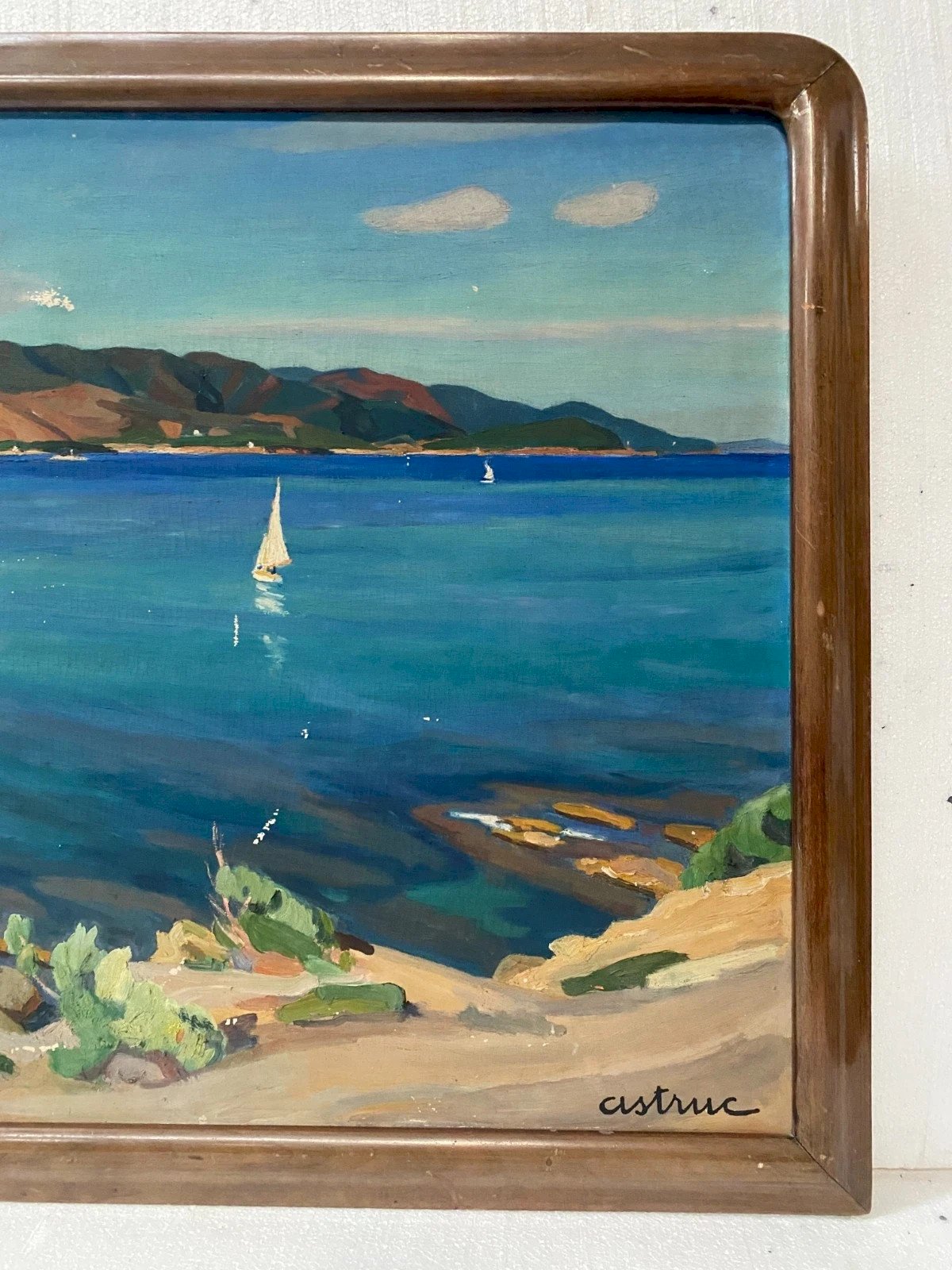 "La Baie d'AGUAY near Saint Raphael" Oil on canvas signed by Edmond ASTRUC Edmond Astruc (1878–1977) is a painter from Marseille. He is committed to representing the landscapes of Provence and the Mediterranean. He has a strong mastery of color and light in the landscapes of Provence. Dimensions H 92 x W 196 x D 5 cm Period: 20th century Type: Oil Country of origin: France Height: 92 Genre: Expressionism Characteristics: On canvas Length: 196 Theme: Landscape Width: 5
