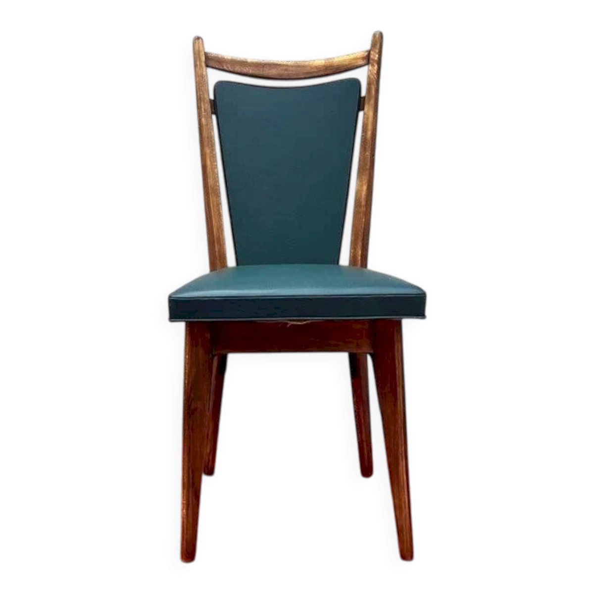 Pair of vintage solid wood and leatherette chairs from the 1960s, Antique seating furniture