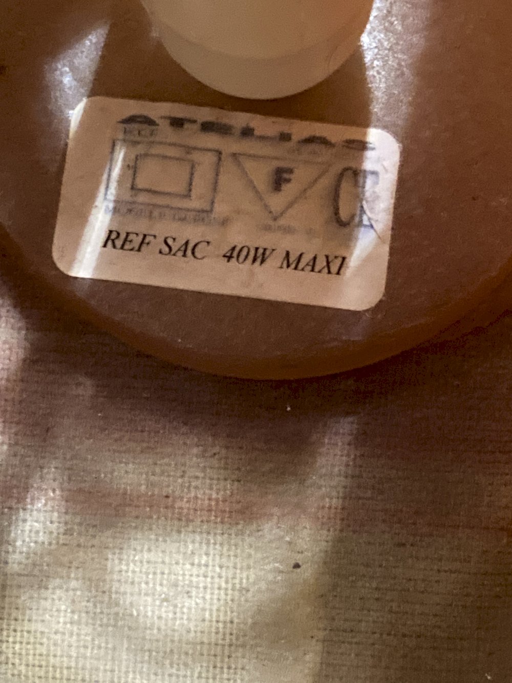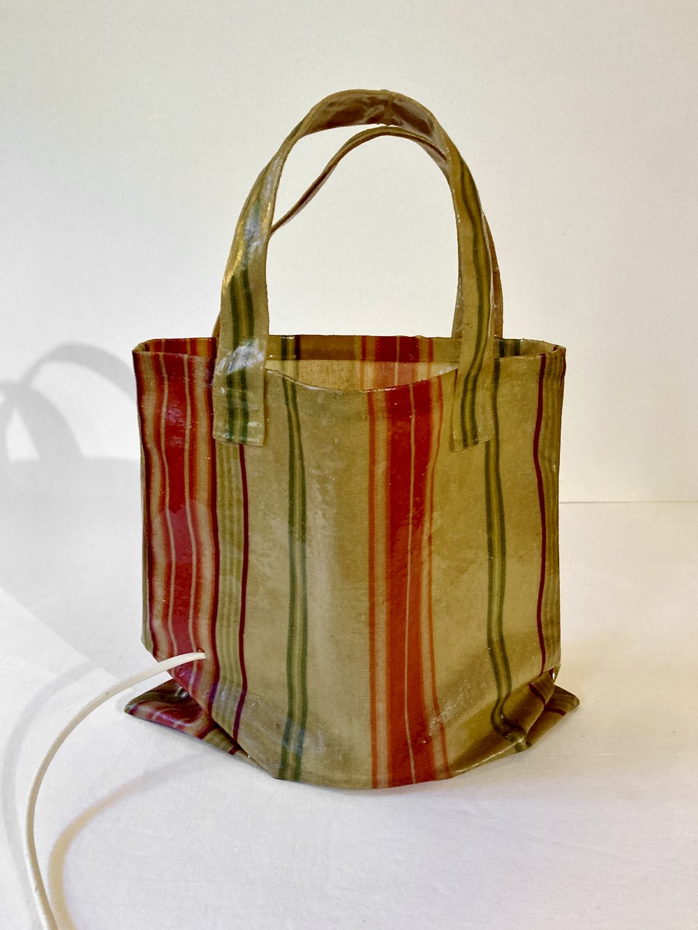 Original vintage lamp in the shape of a small beach bag, published by Atelias France in the 1980s, in the style of Lionel Le Scornec's creations. A unique decorative piece, atypical and sculptural, in the taste of French design from the 80s.