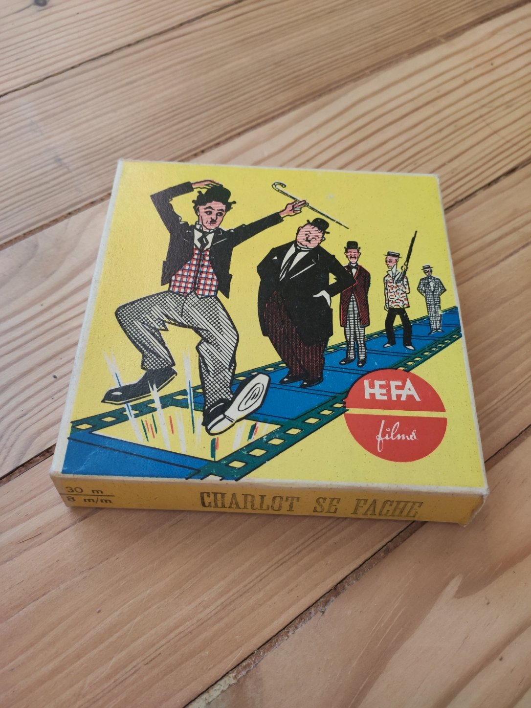Authentic 8mm film reel produced by the famous French company HEFA Films in the 50s/60s. "Charlot Gets Angry," featuring Charlie Chaplin. 8mm. Original box in excellent condition, with typical retro illustrations of the time, vivid colors, and minimal wear. Complete film. Ideal for cinema room decoration, curiosity cabinet, or to complete a silent film collection. Careful packaging for shipping.