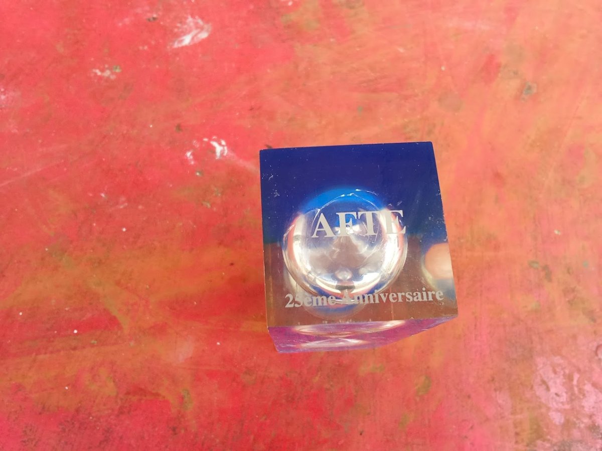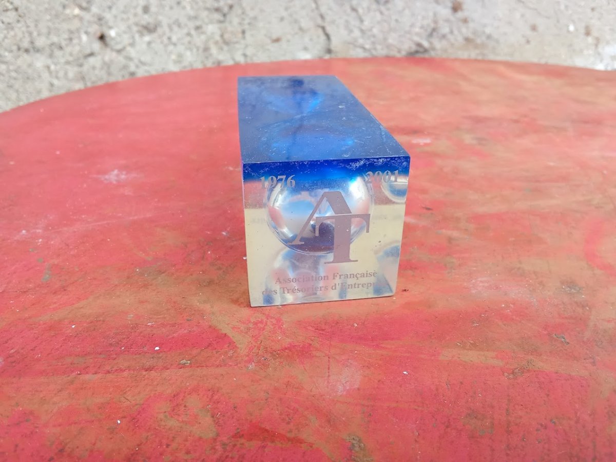 Dimensions: 10 cm high; 3.9 cm on the sides. Good condition.