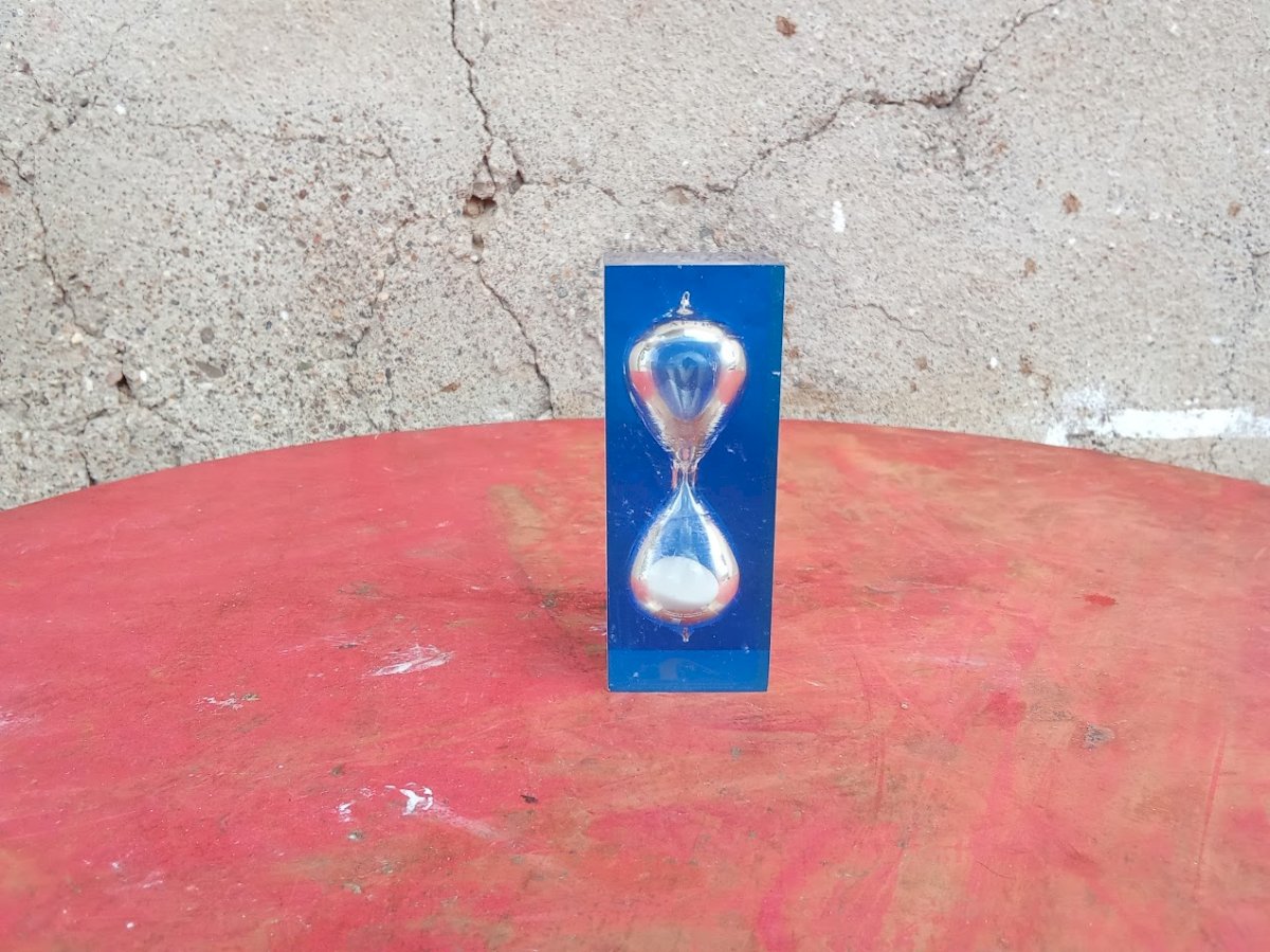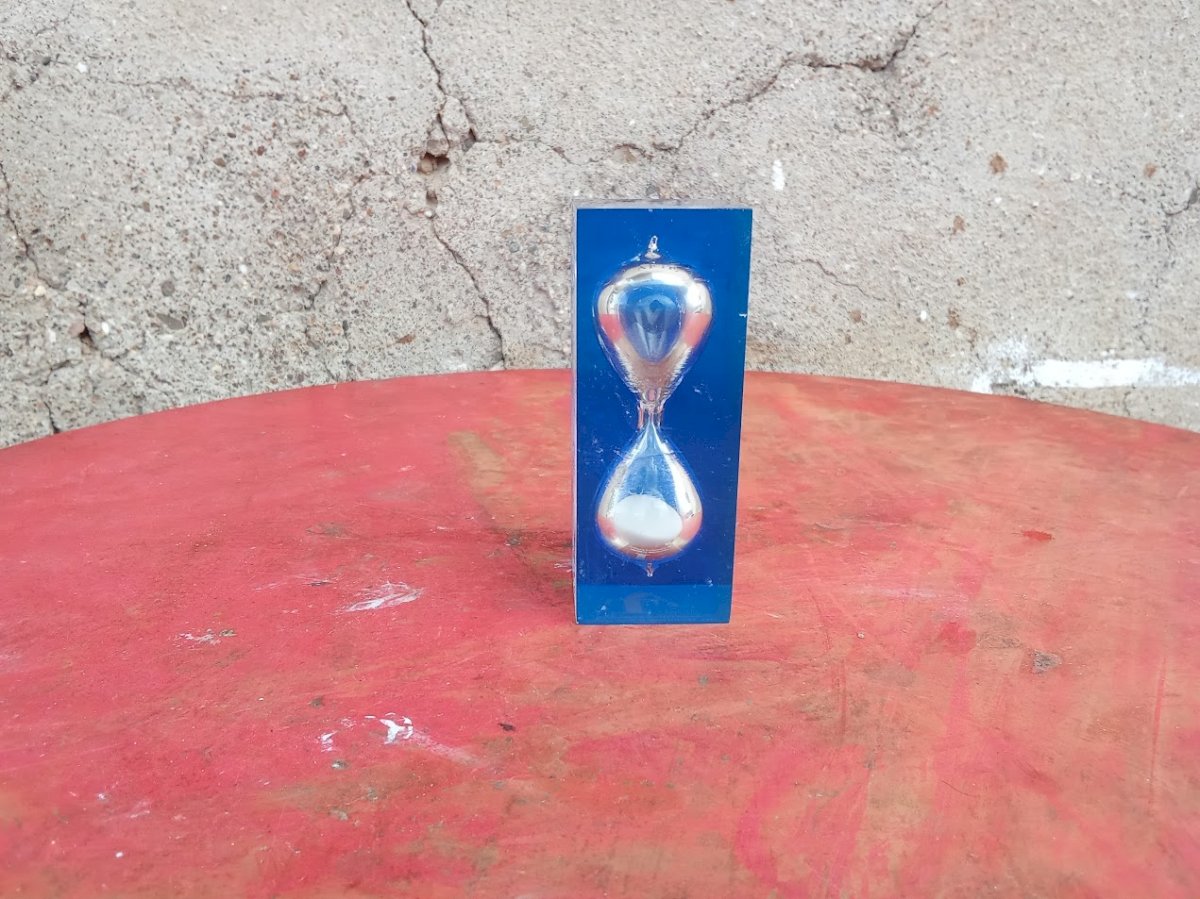 Hourglass timer inclusion resin vintage Las Vegas casino games poker cards