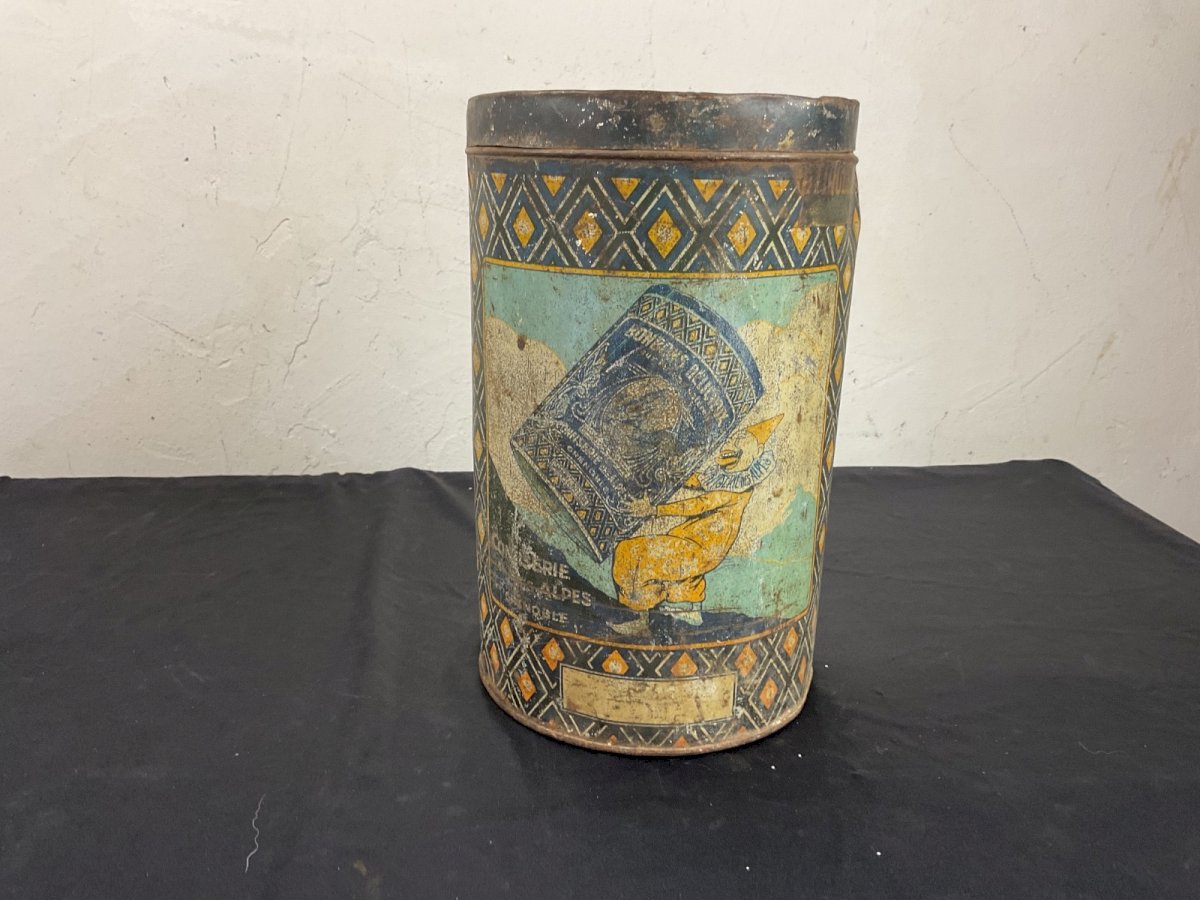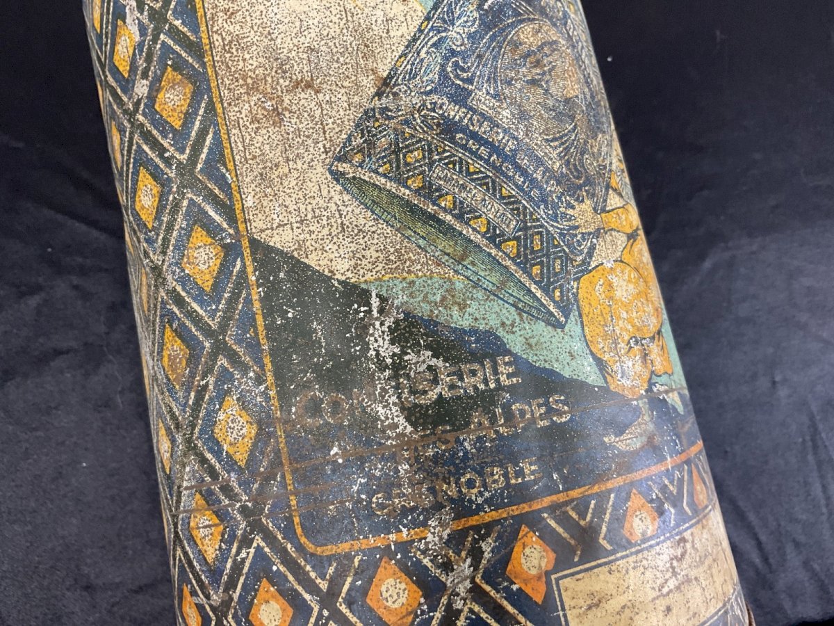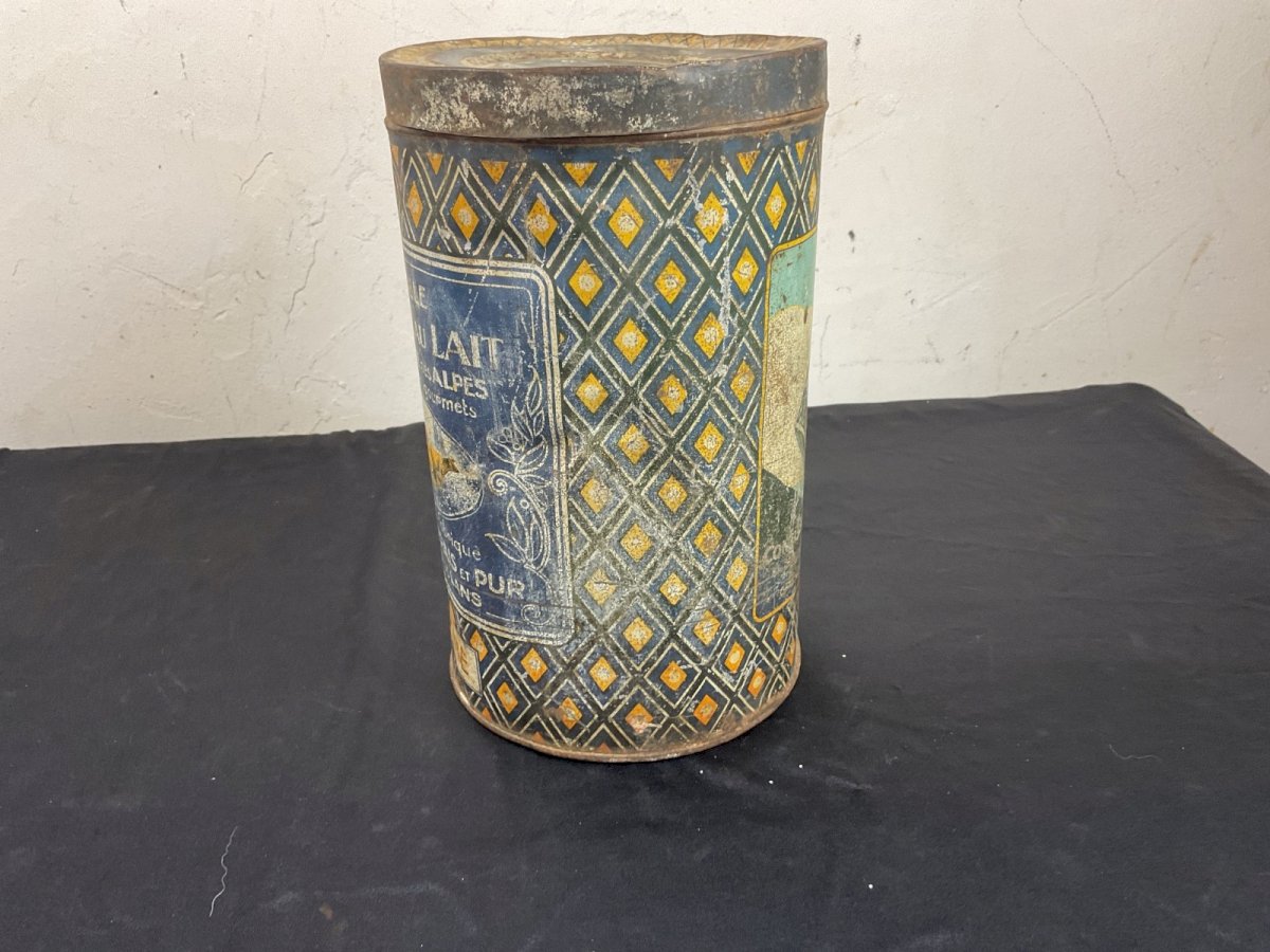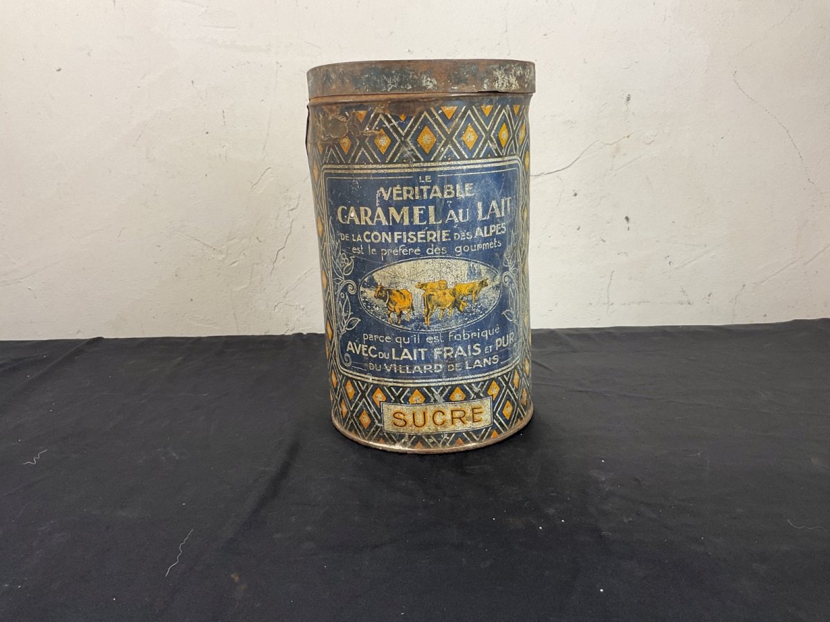 Old advertising tin box for milk caramel Villard de Lans Height: 25 cm Diameter: 15 cm Condition: Used: Item has been used. Please refer to the seller's description for more details... Used: Item has been used. any imperfections. Original/reproduction: Original Country of manufacture: France Sub-theme: Candy, Confectionery Material: Metal Theme: Food product Shape: Cylindrical