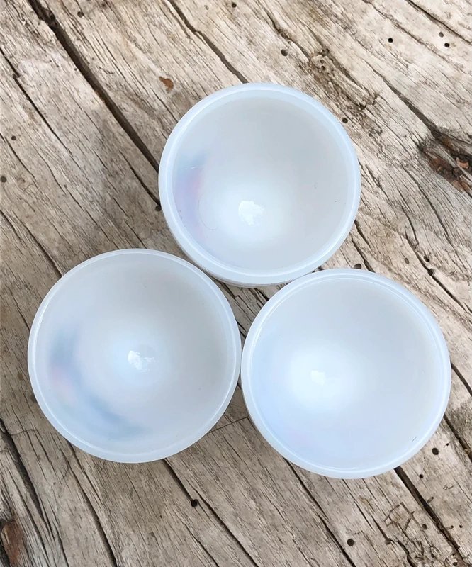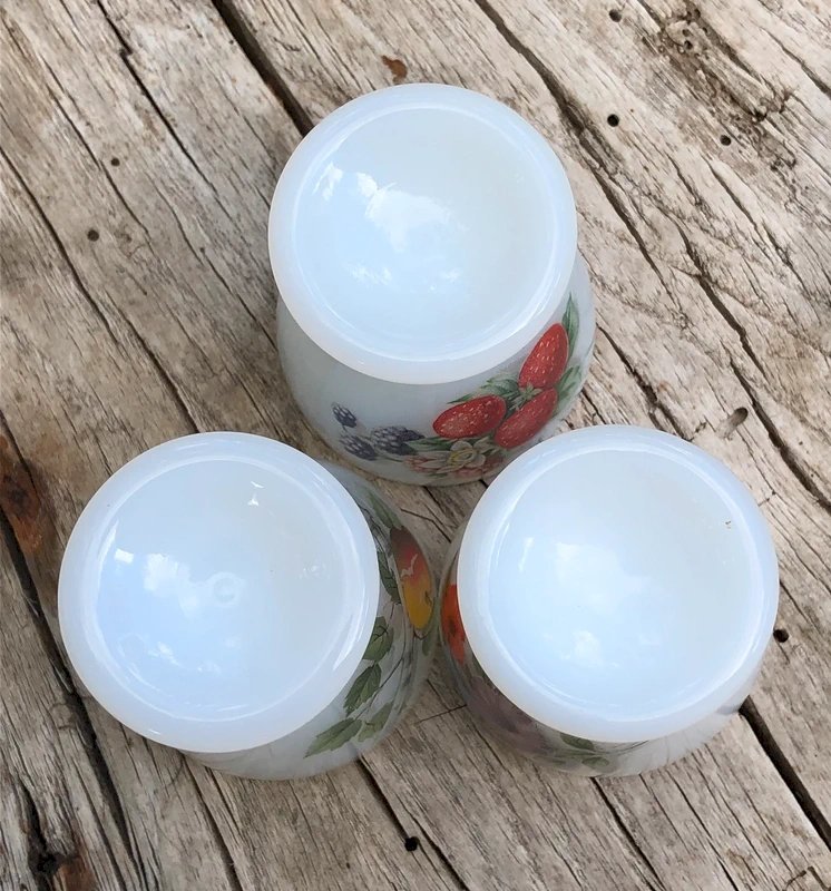 Pretty vintage green glass egg cup: Rabbit in wicker basket