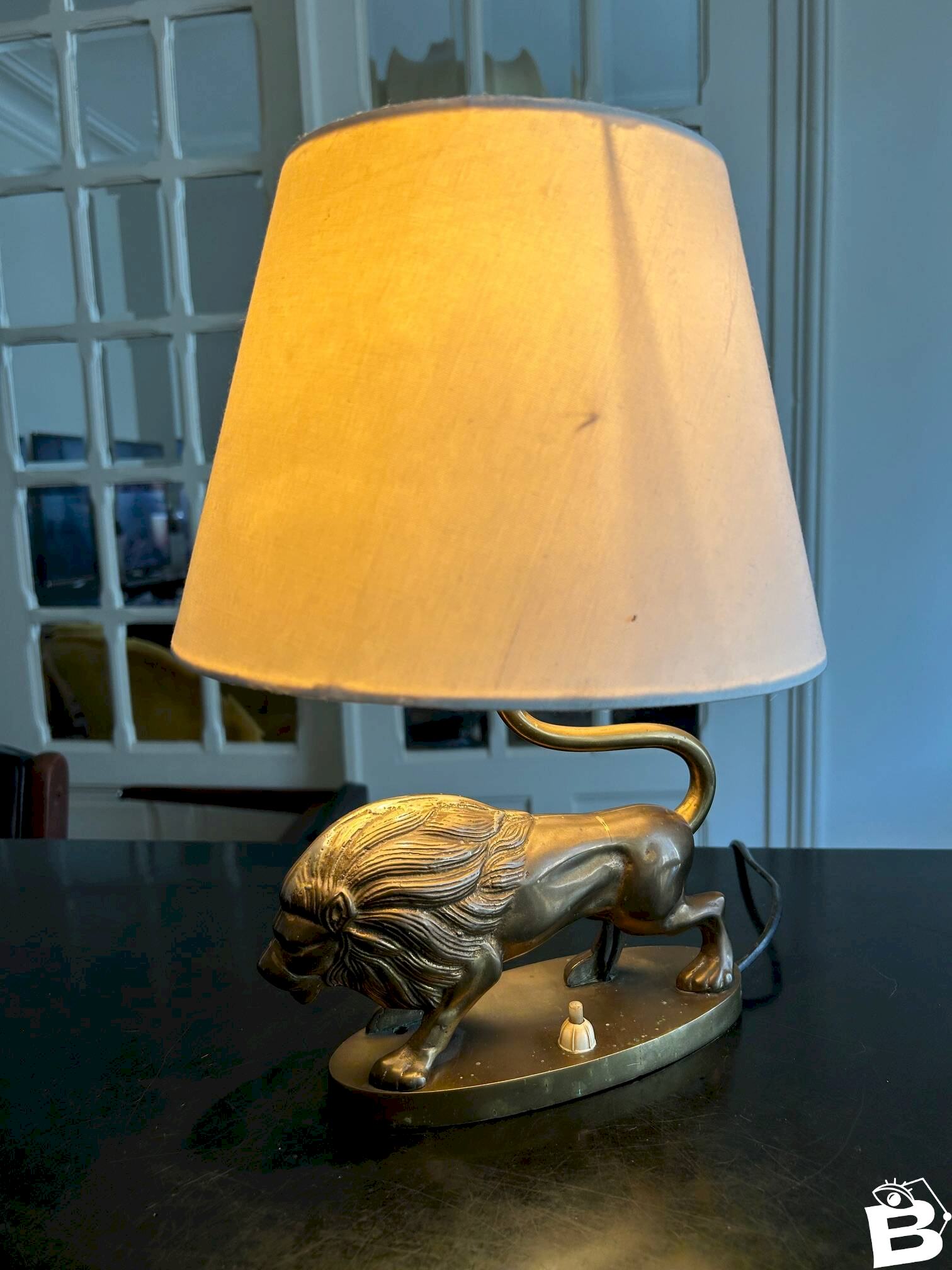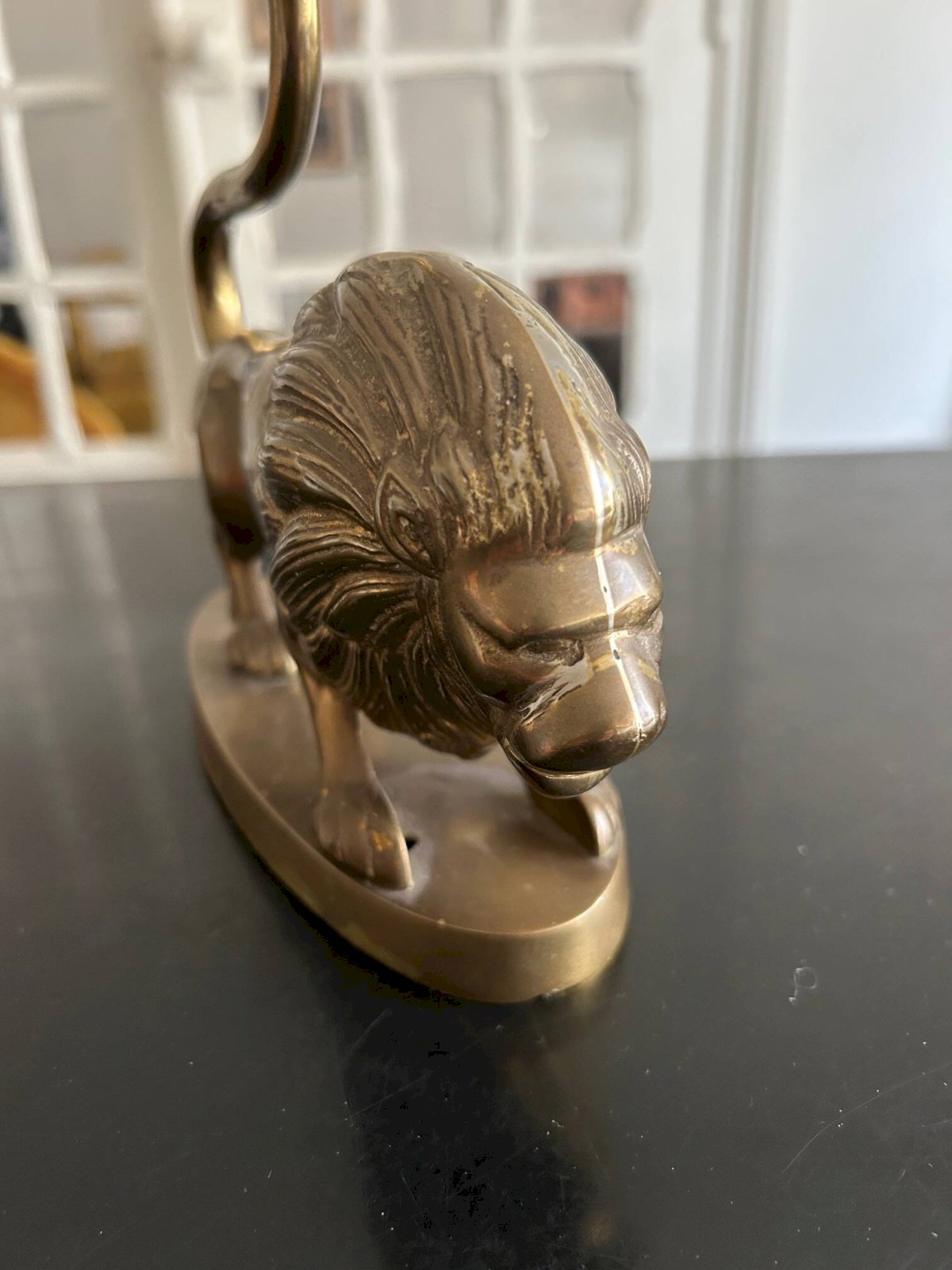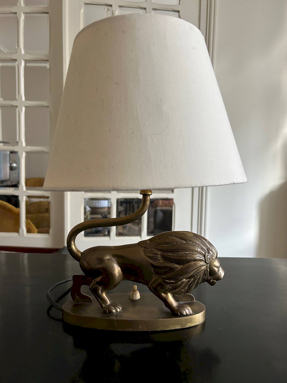vintage brass lamp Lion