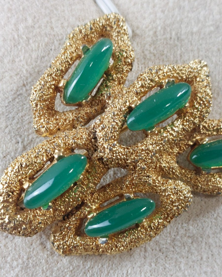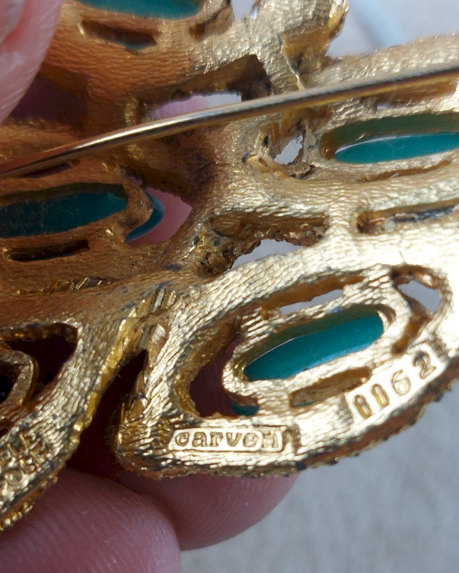 Vintage brooch, made of gilded metal and resin, Carven in good condition, some wear to the gilding, the clasp is secure marked Carven registered model, 1162 dimensions 5 cm X 4 cm see photos Check out my other items! reduced shipping costs for combined purchases Condition:Used Item has been worn. any possible imperfections. Brand:Carven Type:Brooch Dominant color:Gold Country of origin:France