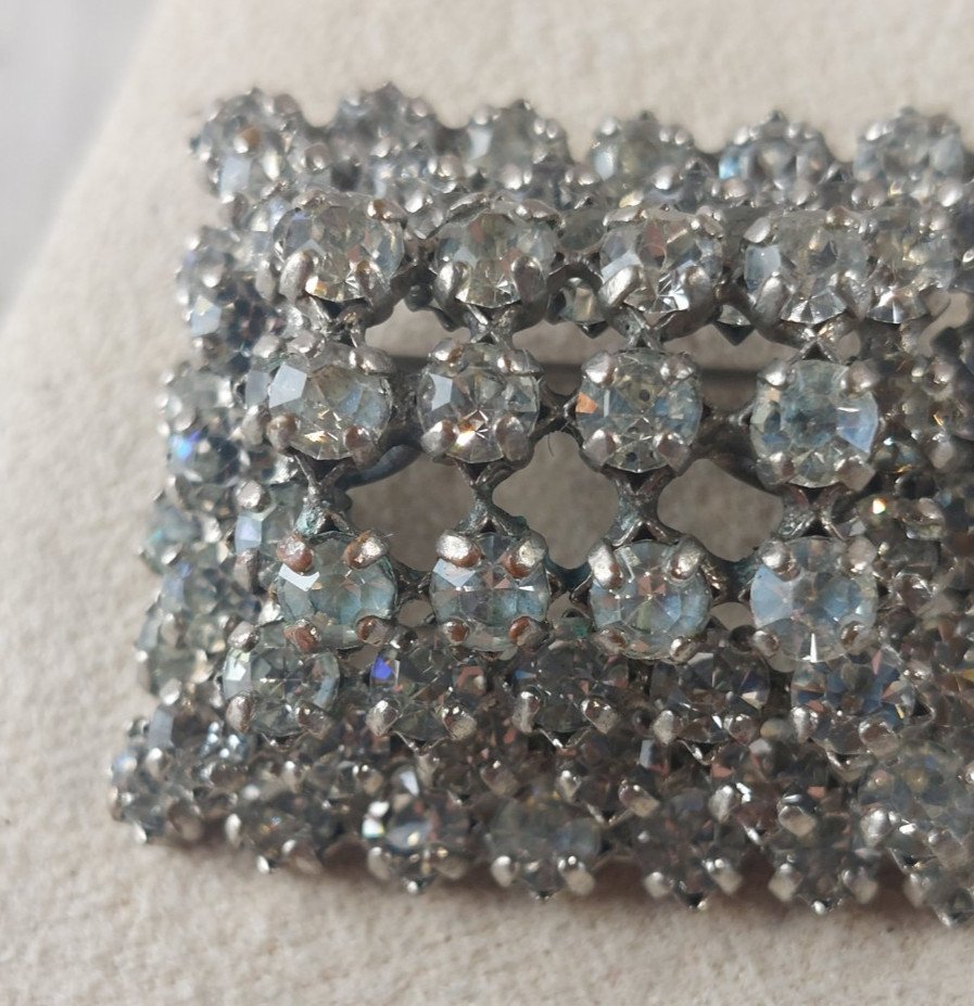 Old brooch, rhinestone / crystal decoration, silver-plated metal, vintage in good condition unmarked dimensions 3.6 cm X 3.1 cm see photos Check out my other items! Shipping discount for combined purchases Condition: Used Item has been worn. any imperfections. Type: Brooch
