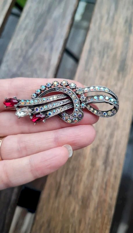 above €25, please choose a carrier if possible take the opportunity to buy in bulk: - 5 items - 10% - 10 items - 20% - 20 items -30% carefully look at the photos to see imperfections dimensions width: 6.5 cm height: 2.4 cm#brooch#gifts#chic#collection#vintage#jewelry#vintagebrooch#rhinestonebrooch#rhinestones
