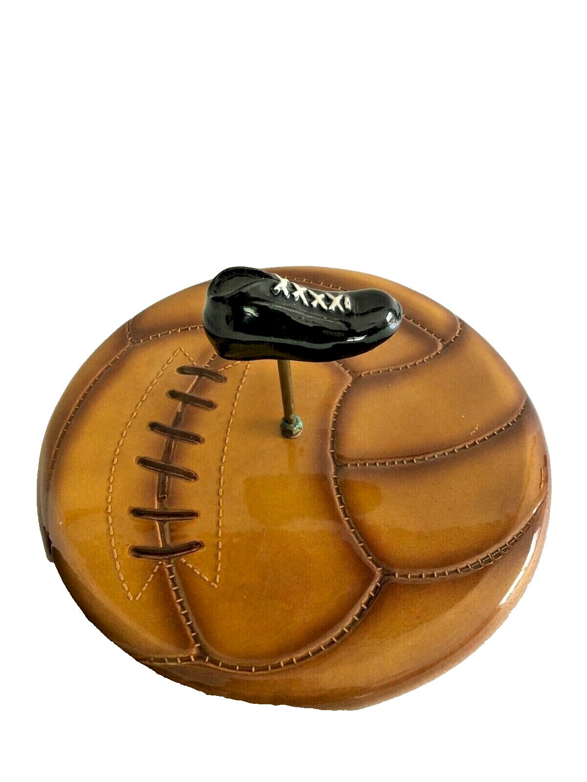 fun brown ceramic cheese platter mimicking a football with a handle resembling a shoe. overall good condition with some small dents and signs of oxidation on screws visible in photos but not serious no signature diameter 28 cm height 13 cm weight 850 grams Look at the photos above which will also serve as a description. Careful and secure packaging via Mondial Relay or with the post to be chosen at the time of your purchase. Thank you all and happy hunting in my shop. Returns accepted within 14 days from receipt, return in its original packaging, in its original condition, no refund for items returned broken or lost by the carrier, return at the buyer's expense. Don't hesitate to add my shop to your favorites! Color: Brown Material: Ceramic, Porcelain Type: Platter