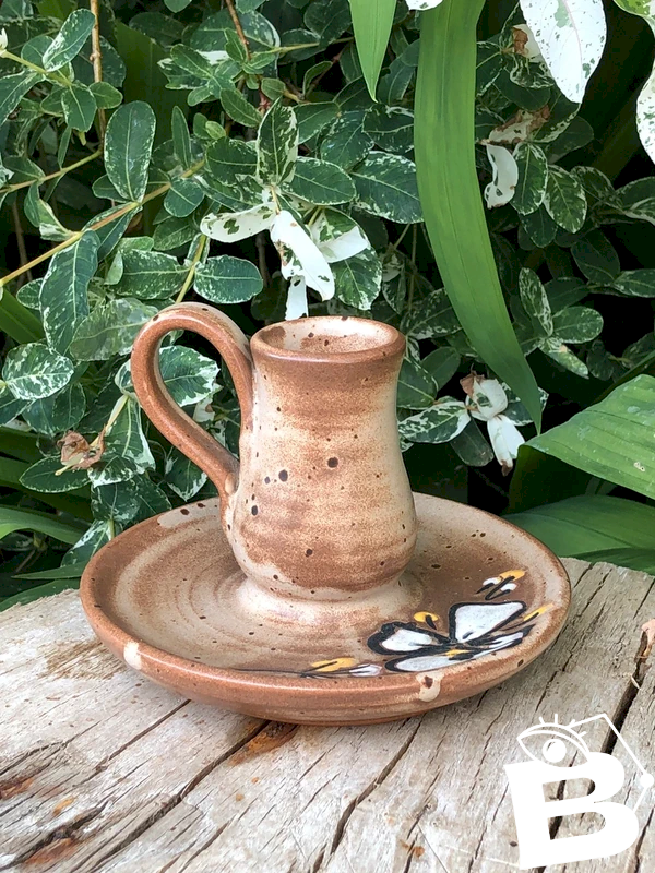 *PRETTY OLD CERAMIC HAND CANDLE HOLDER EMILE TESSIER flowers & Butterflies decor XX
