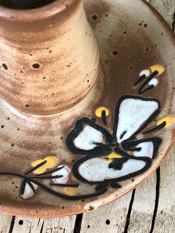 Nice vintage brown flower-patterned ceramic candlestick in excellent condition. Height 8.2 cm Diameter 11.2 cm