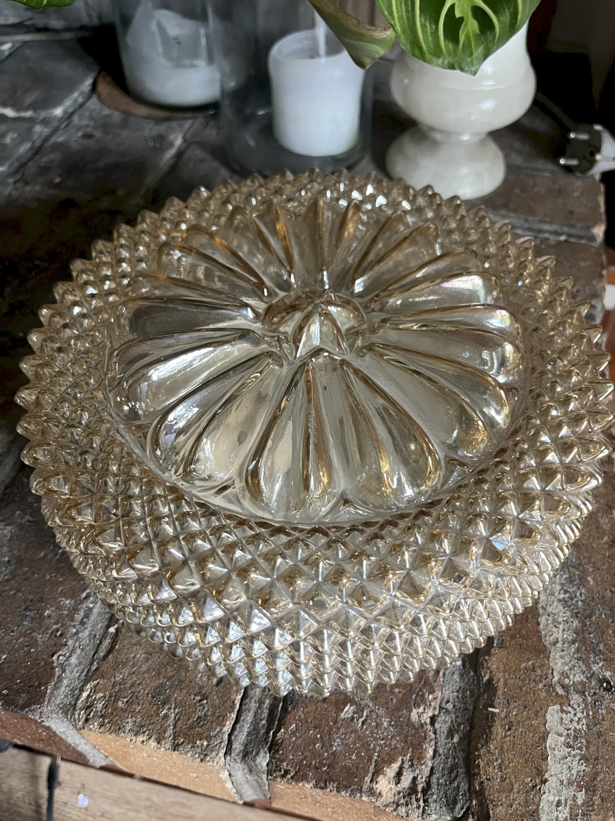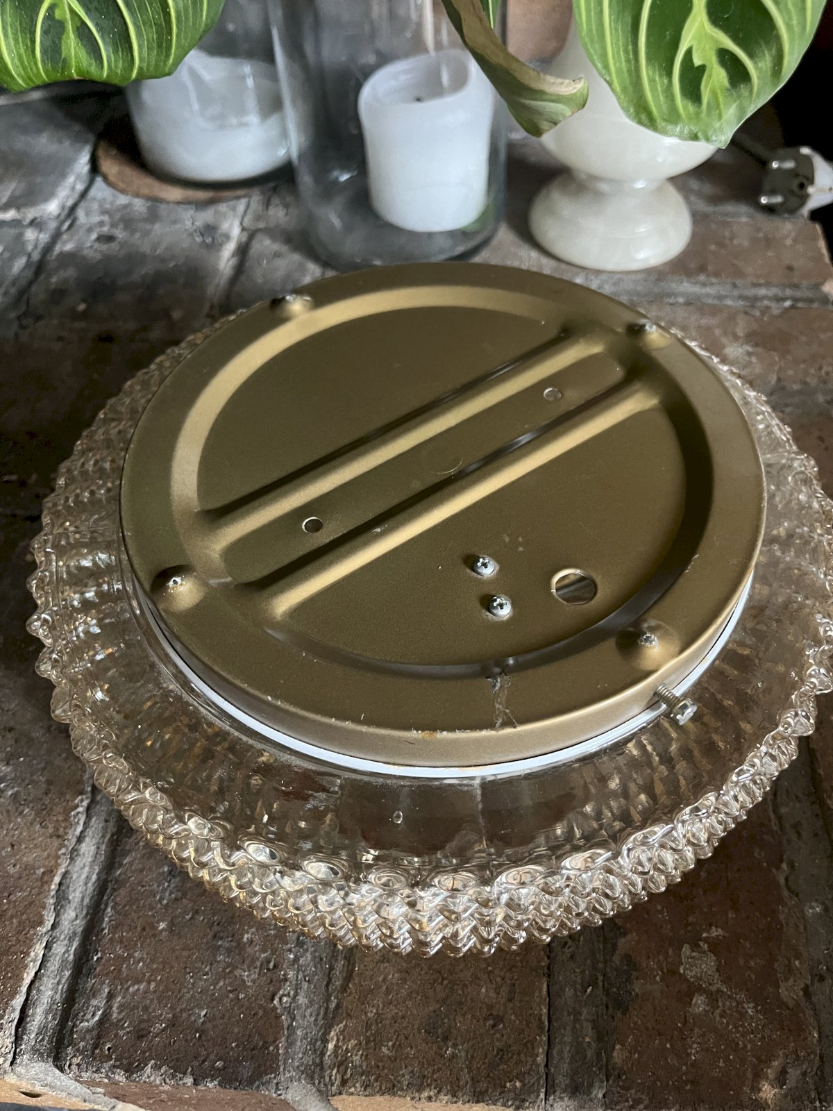 Ceiling light from the 60s, good overall condition except for three small broken tips which are barely visible. Wires and bulb not included, maximum 60 W.