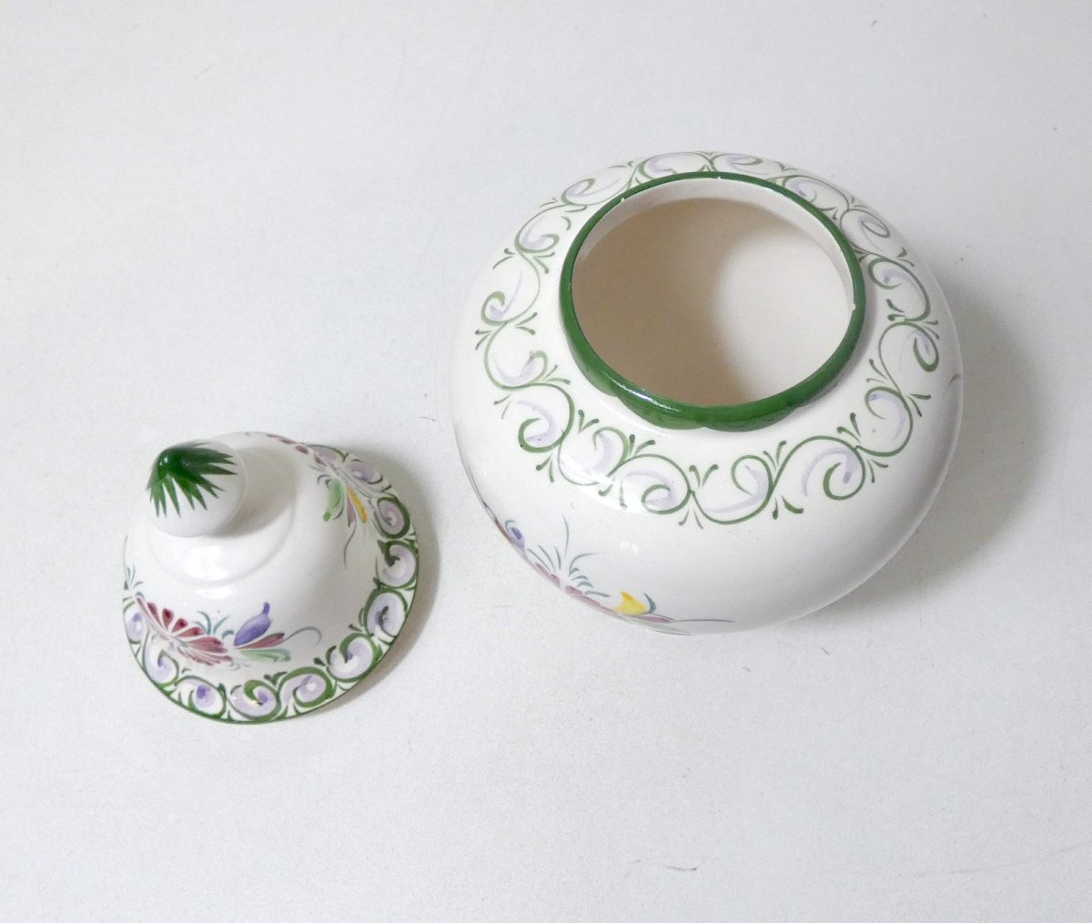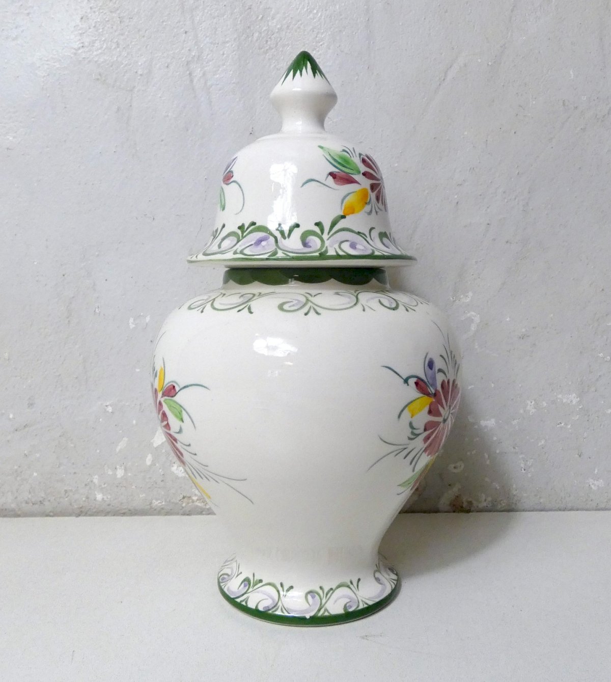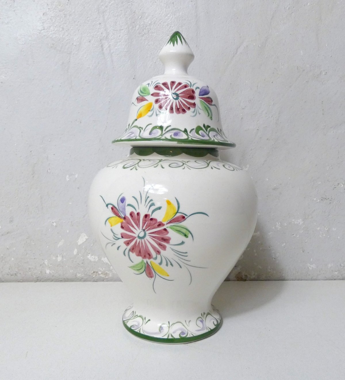 Ceramic pot. Height: 24 cm. Diameter: 13.5 cm. In good condition. Some chips on the edge of the lid (clearly visible in the photos). Condition: Used item. Check the seller's description for more details ... Used item. any potential imperfections.
