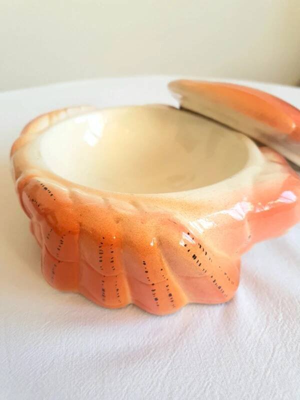 Antique "Tourteau" terrine in ceramic known as barbotine, probably by Michel Caugant. To be used as a decorative box, catch-all... Stamp faded. Very beautiful color, nice gradient, and great shine. Perfect condition. No chips or cracks. Dimensions: 19 cm by 15 cm, 9 cm in height. L: 15 l: 19 H: 9