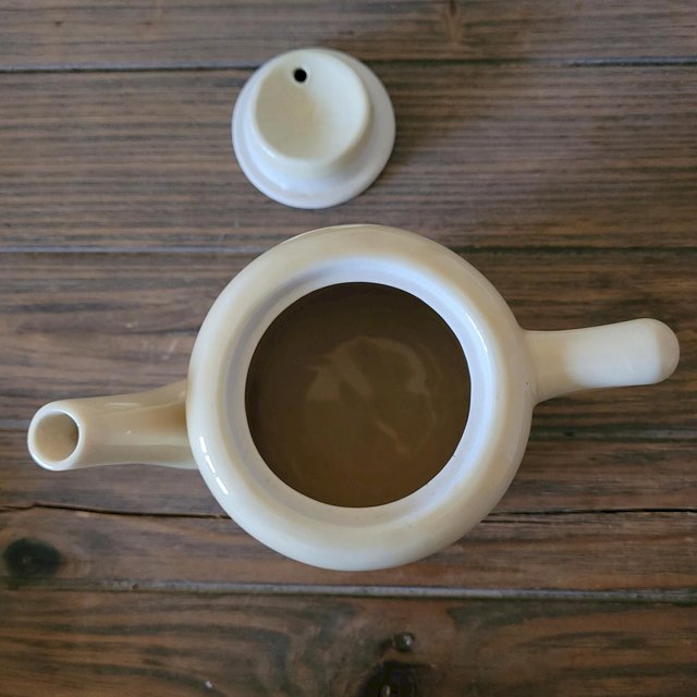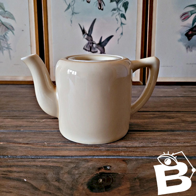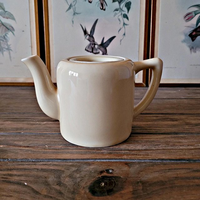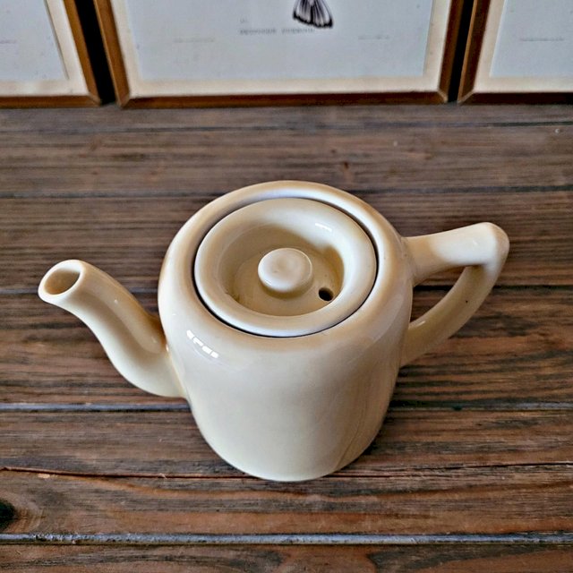 Cute little tea pot in cream-colored ceramic. Capacity: about 40 cl. Very good condition. ? diameter 9.5 cm at the bottom (6 cm opening) x height 10 cm. Weight: 475 g. L: 9 W: 9 H: 10