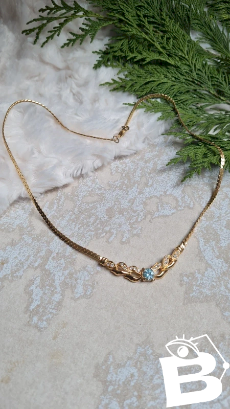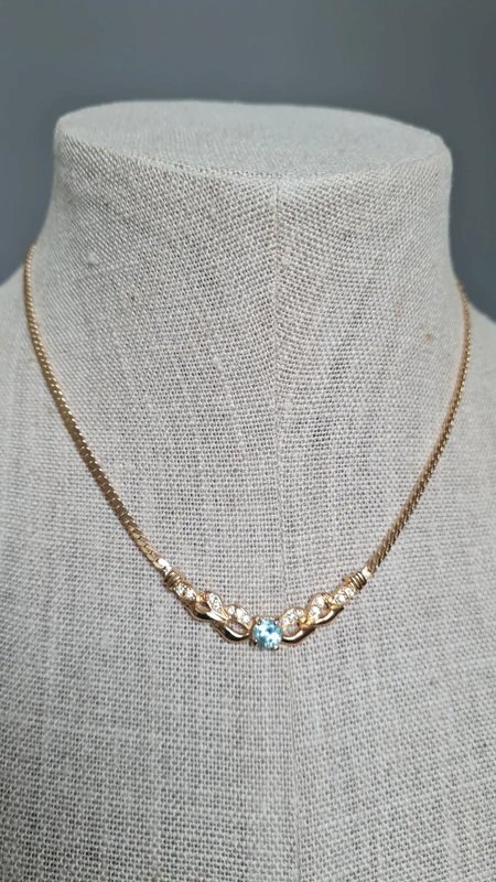 Vintage choker necklace with rhinestones and lagoon blue sapphire.