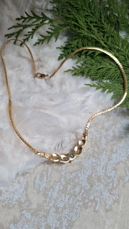 Vintage choker necklace with rhinestones and lagoon blue sapphire. Golden Glass/Metal/Stone