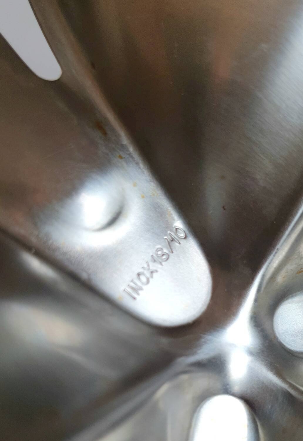Very nice and original appetizer tray in the shape of a clover, by Jean Couzon. Made in France. Made of 18/10 stainless steel. Very good overall condition, slight signs of use. Dimensions: 20x20x4 cm. L: 20 w: 20 H: 4