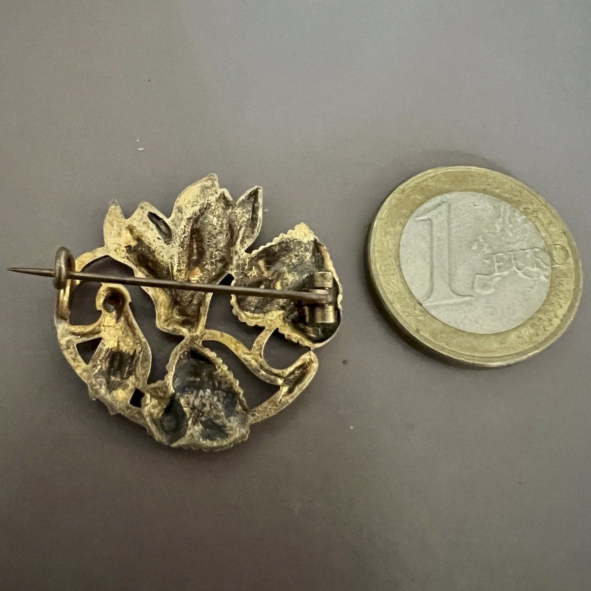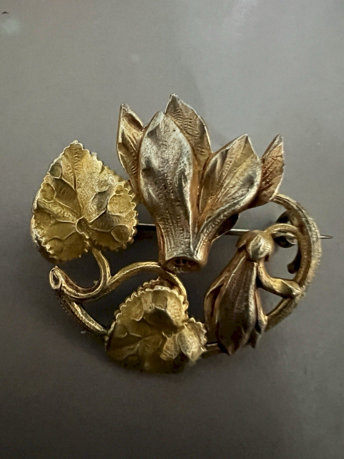 Antique Art Nouveau Floral Unisex Brooch 1890/1910. Elegant metal brooch, gold with vermeil hues, late 19th century, early 20th century, unisex, superb patina, several different shades of gold. Dimensions approximately 3 cm by 3.5 cm, including the width of the pin. Condition: Used item that has been worn... Used item that has been worn. Any imperfections. Type: Brooch Brand: Art Nouveau Country of origin: France Dominant color: Gold Material: Metal
