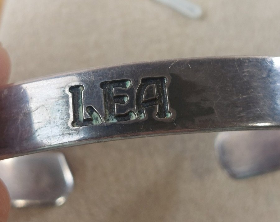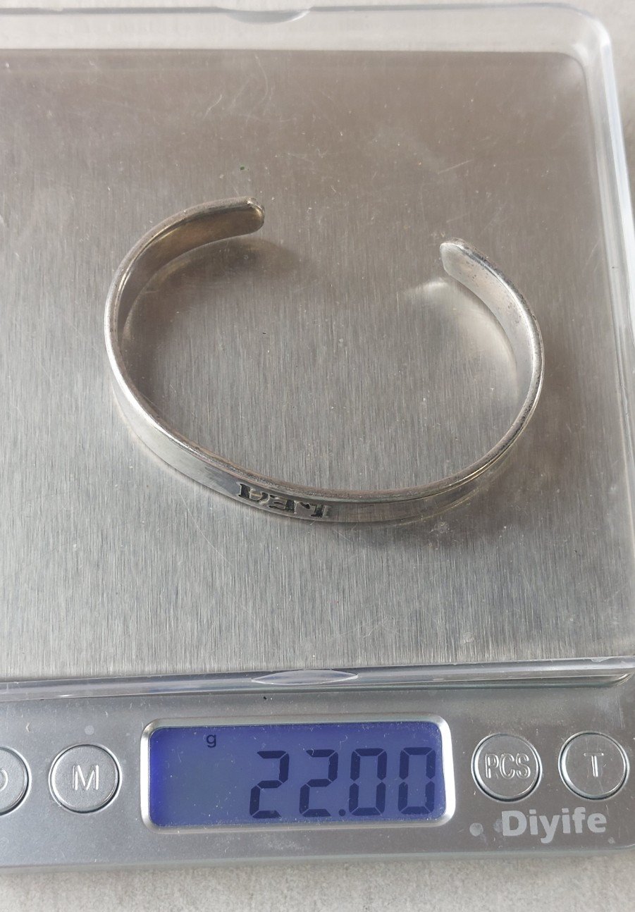 Vintage bangle / cuff bracelet, Lea, made of silver in good condition with a square hallmark, interior dimensions 5.8 cm X 3.9 cm, width 0.9 cm, total weight 22 g. See photos. Check out my other items! Discount on shipping costs for bulk purchases. Condition: Used item that has been worn. Any potential imperfections. Style: Bangle Metal: Silver.